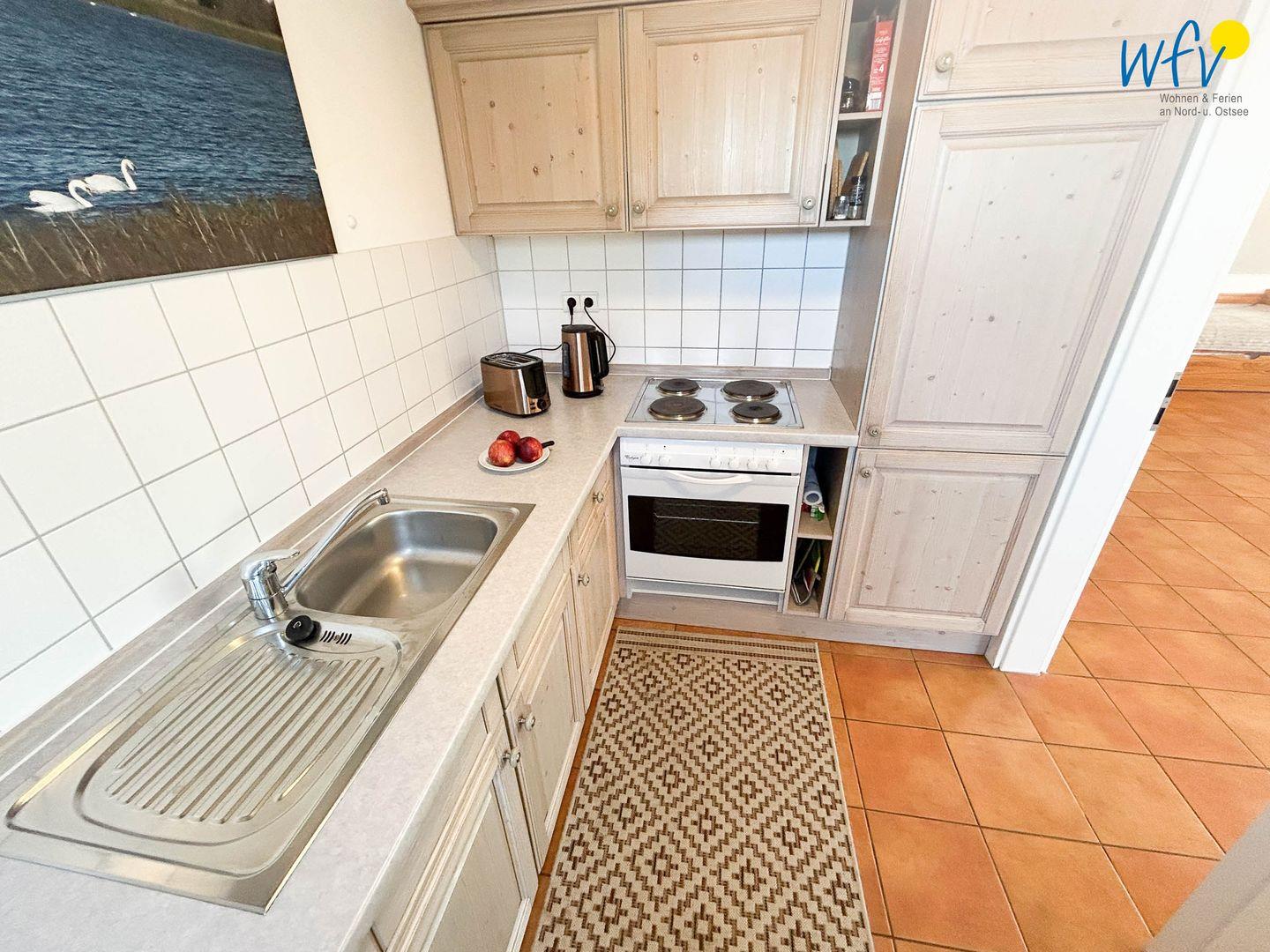 In dem geräumigen hellen Wohnraum empfängt Sie ein schönes Ensemble aus Esstisch und Sofaecke sowie TV und HiFi-Anlage, das zum Erholen und Ausspannen einlädt. In der separaten Küche lassen sich schnell und einfach leckere Mahlzeiten zubereiten. Ein 4-Plattenherd, ein Backofen, eine Mikrowelle und ein Geschirrspüler ermöglichen Ihnen eine bequeme Selbstverpflegung. Als Kaffeeliebhaber können Sie zwischen einer klassischen Kaffeemaschine und einer Senseo-Maschine (Pads) wählen.