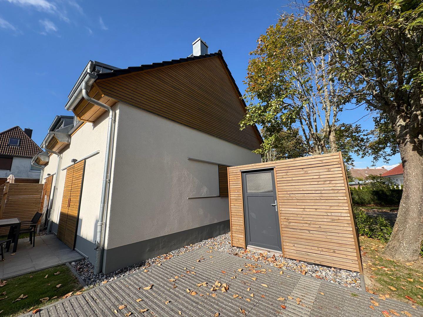 In ruhiger Lage bietet unser stilvoll eingerichtetes Haus Bug auf 66 m² mit Terrasse und kleinem Garten Platz für 4 Personen. Die hochwertige Einrichtung wurde in liebevoller Eigenarbeit und mit viel handwerklichem Geschick aus massivem Eichenholz gefertigt und verleiht unserem Ferienhaus ein besonderes Ambiente.