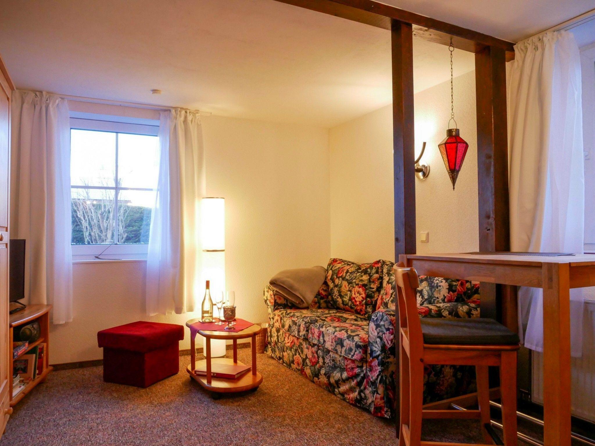 Das Doppelzimmer Moonlight besticht durch sehr viel Romantik, Gemütlichkeit und eine fröhlich- farbige Innenausstattung. Ein Himmelbett mit dimmbarem Sternchenhimmel lädt zum Träumen ein. Das Sofa sorgt für eine angenehme Atmosphäre. Eine voll eingerichtete Miniküche steht zur Verfügung. Im Bad gibt es sowohl einen Fön und einen Kosmetikspiegel als auch diverse Kosmetikprodukte, falls Sie Ihre eigenen vergessen haben. Angeboten werden ofenfrische Brötchen in Varianten ab 9 Uhr an die Tür gehängt. Oder ein Frühstück für 15,- Euro pro Person ab 9 Uhr ins Zimmer oder in den Garten serviert. Bei Gelegenheit gibt es einen Grillabend, einen Fischabend oder ab und an selbstgebackenen Kuchen. Alles ist auf Bequemlichkeit und Freundlichkeit ausgerichtet - der Gast möge sich von Anfang an zu Hause fühlen.