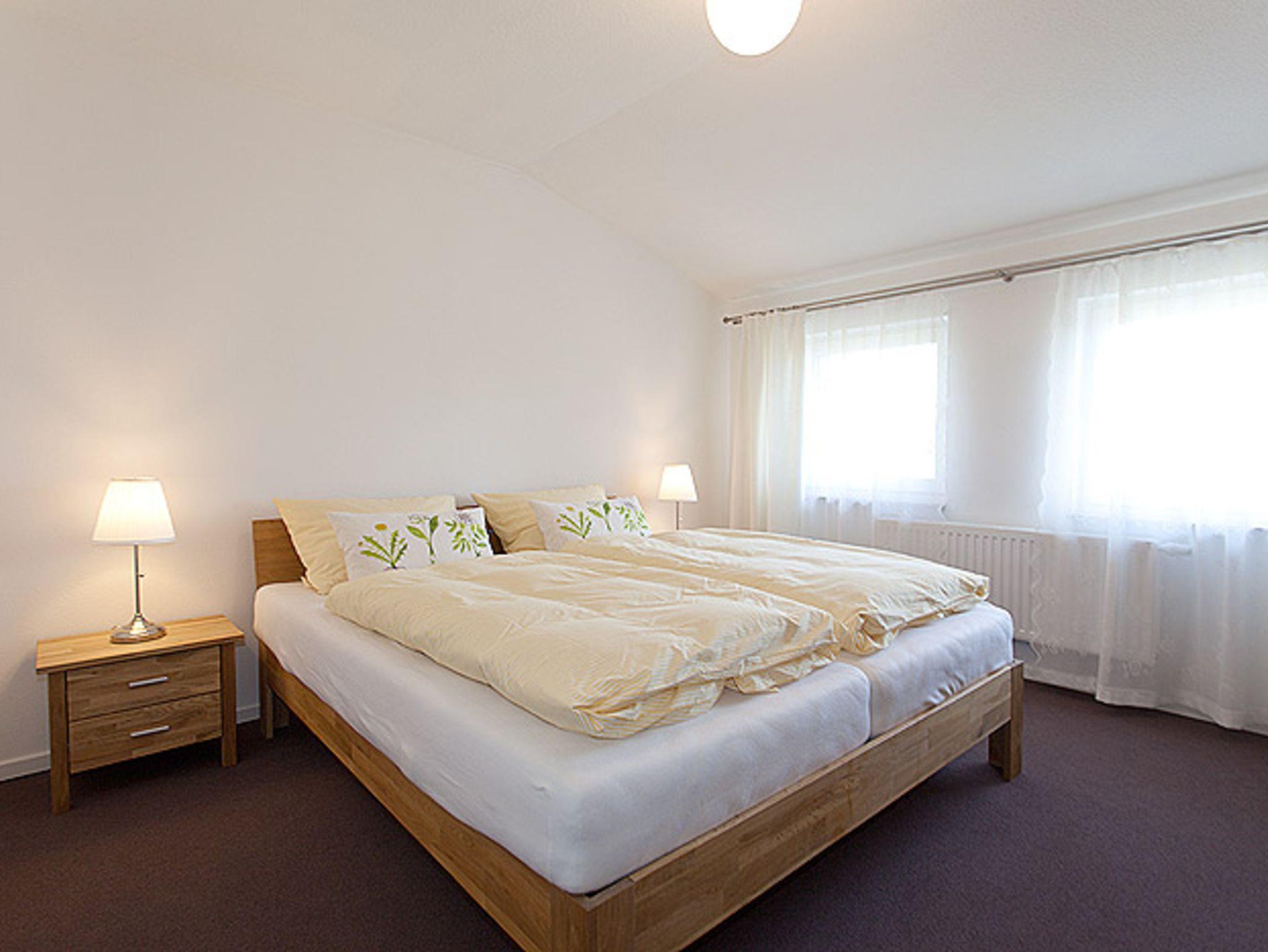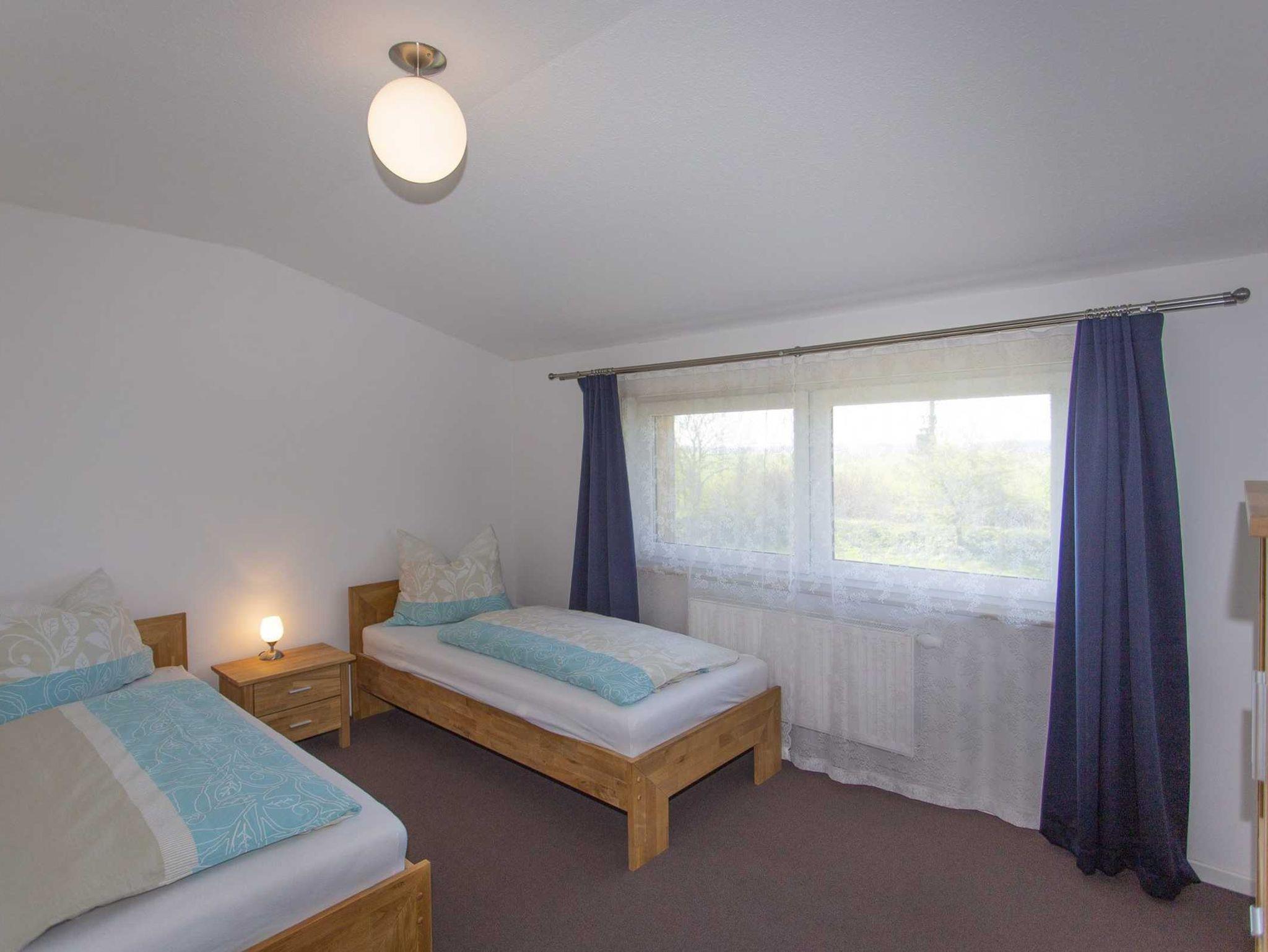 In der oberen Etage finden Sie 2 Schlafzimmer mit Doppelbetten, 1 Schlafzimmer mit Einzelbetten (die auch zusammen gestellt werden können) und 1 Kinderzimmer mit einem Etagenbett.