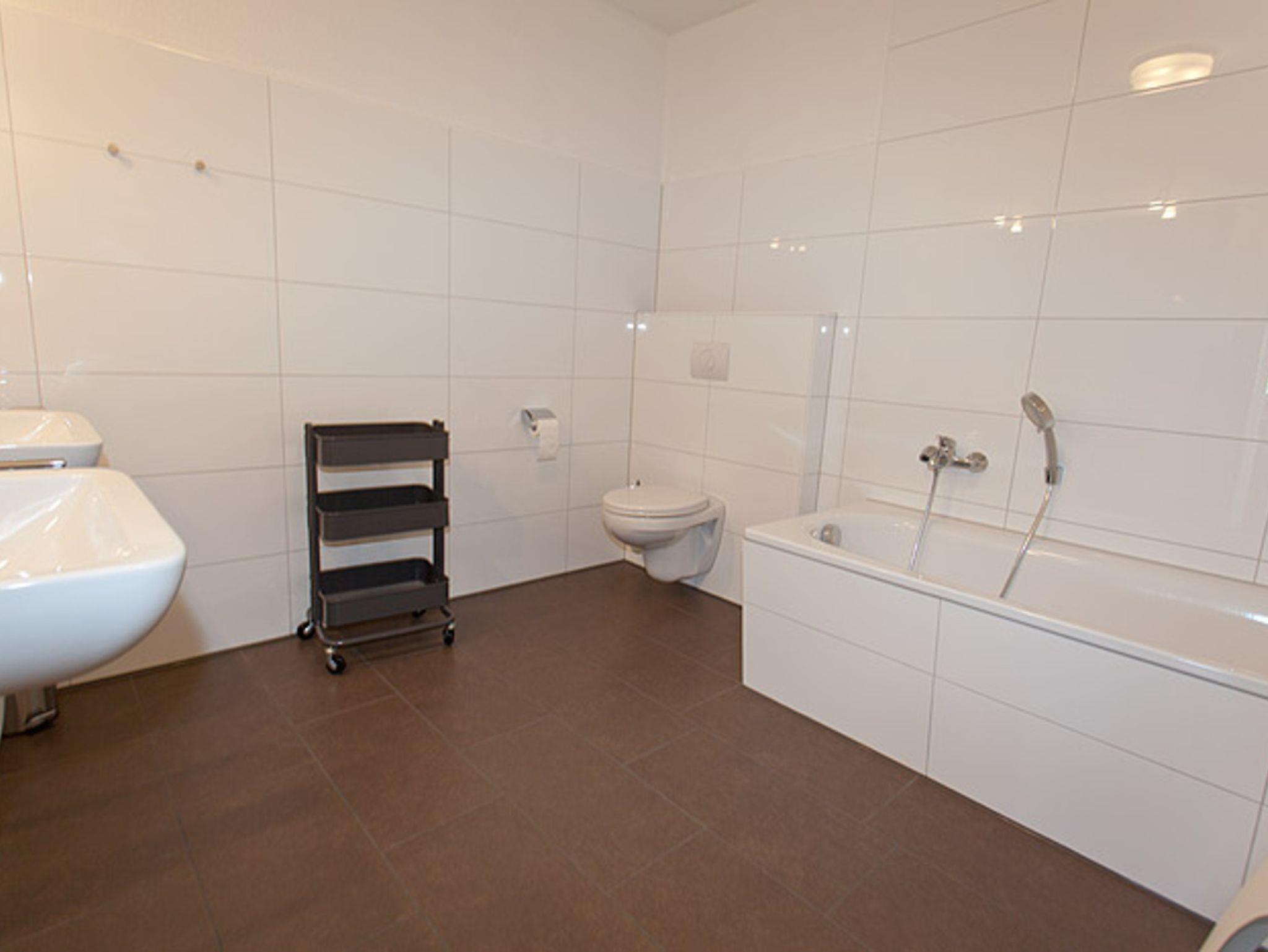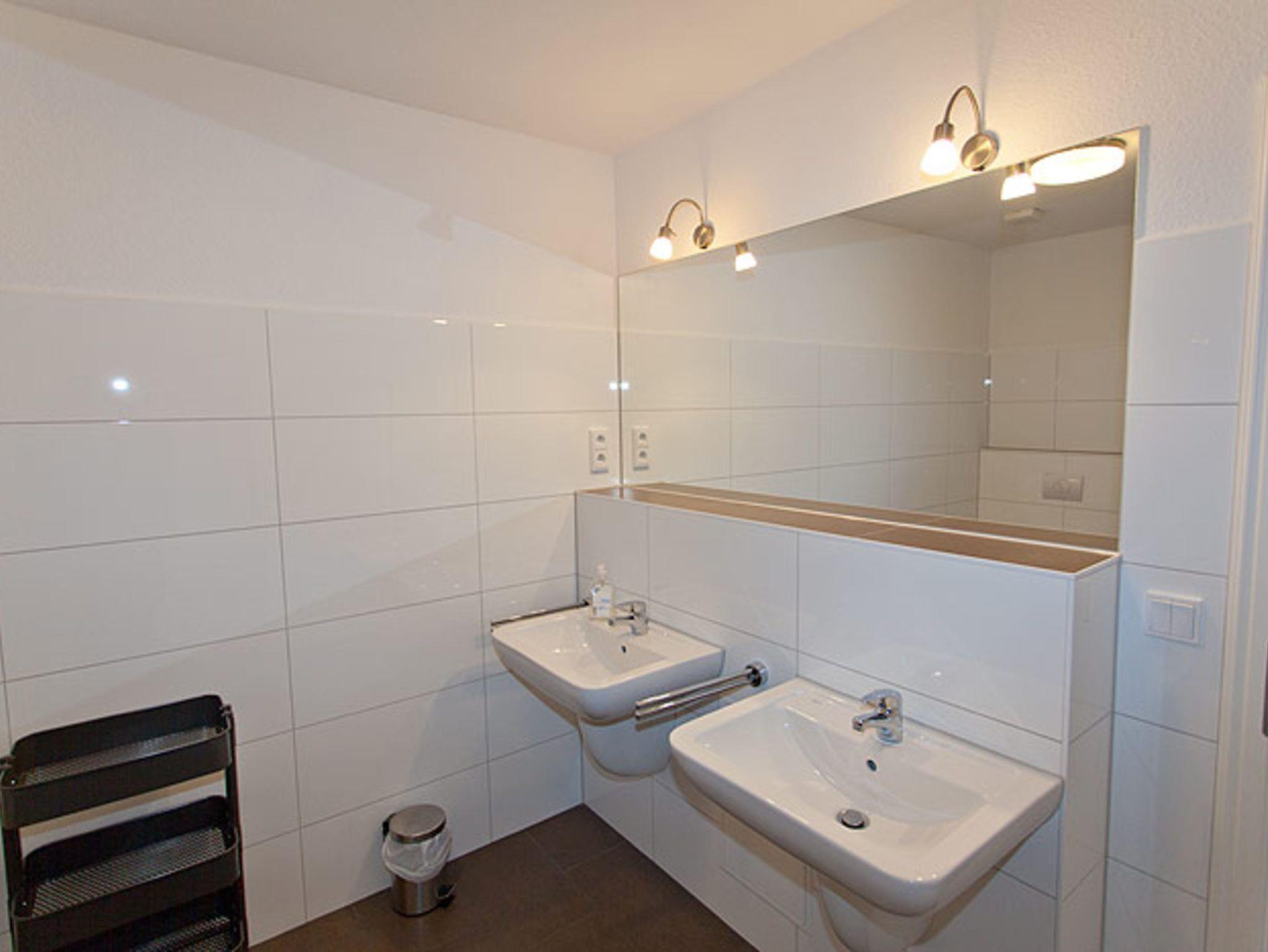 Des Weitern befindet sich hier die Gallerie mit einer Sitzgruppe und TV sowie 2 Bäder mit Dusch bzw. Badewanne und je 2 Waschbecken.