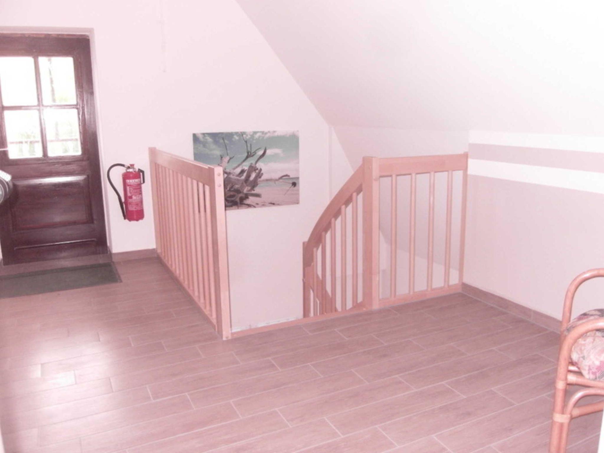 Die Ferienwohnung Boddenkieker liegt im Obergeschoß des Gemeinschaftshauses in der Ferienanlage Rugenhof. Sie besteht aus 2 Schlafzimmern mit Doppelbetten, eines davon mit einer Aufbettung. In den Zimmern gibt es eine Waschmöglichkeit.