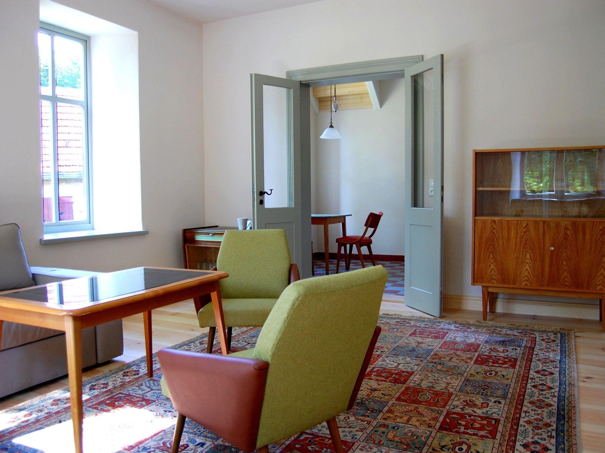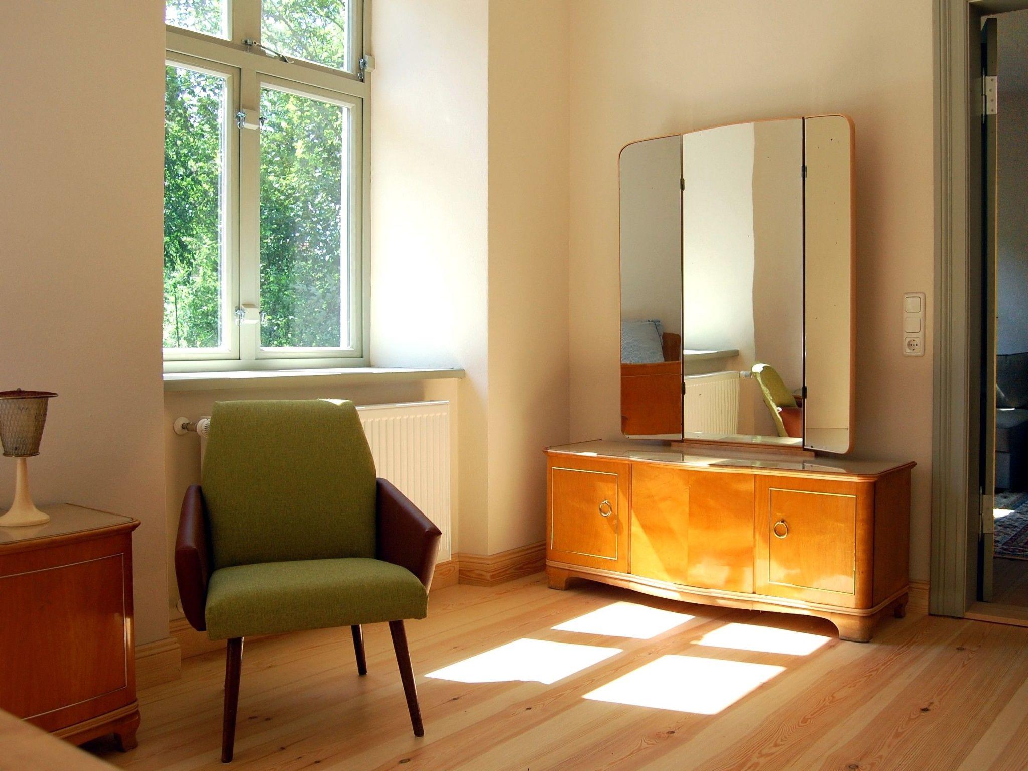 Die Nichtraucherwohnung ist im Stil der 50er/60er Jahre eingerichtet und befindet sich im Erdgeschoss. Küche und Bad (Fußbodenheizung) verfügen über Böden aus Zementfliesen. Wohn- und Schlafraum sind mit traditionellen Dielenböden ausgestattet. Das Sofa im Wohnzimmer kann im Bedarfsfall als Schlafsofa für 2 Personen genutzt werden. Das Schlafzimmer verfügt über ein Doppelbett (180 x 200). Auf Wunsch können ein Kinderbett (bis 2 Jahre) und ein Hochstuhl zur Verfügung gestellt werden.