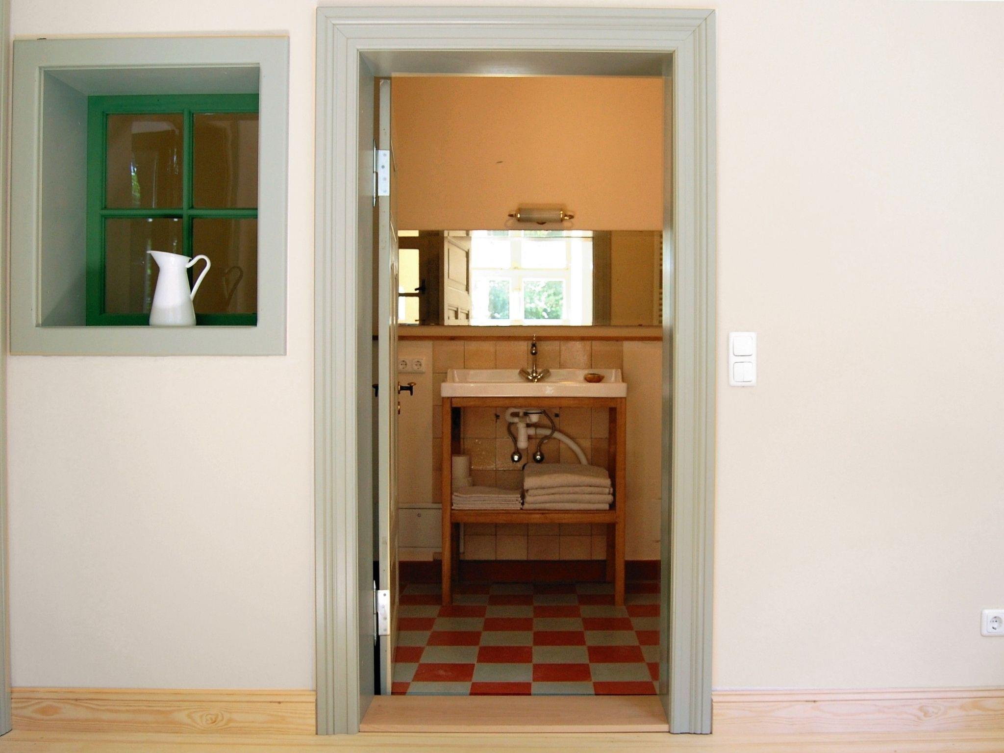 Das Haus steht frei auf einem großen Grundstück am Rande des kleinen Dorfes Petschow. Ringsrum ist der Ort von Wiesen und Feldern umgeben. Wer sich gerne im Freien bewegt, hat ausreichend Gelegenheit. Ein Badesee ist mit dem Fahrrad oder dem Auto zu erreichen (2 km).