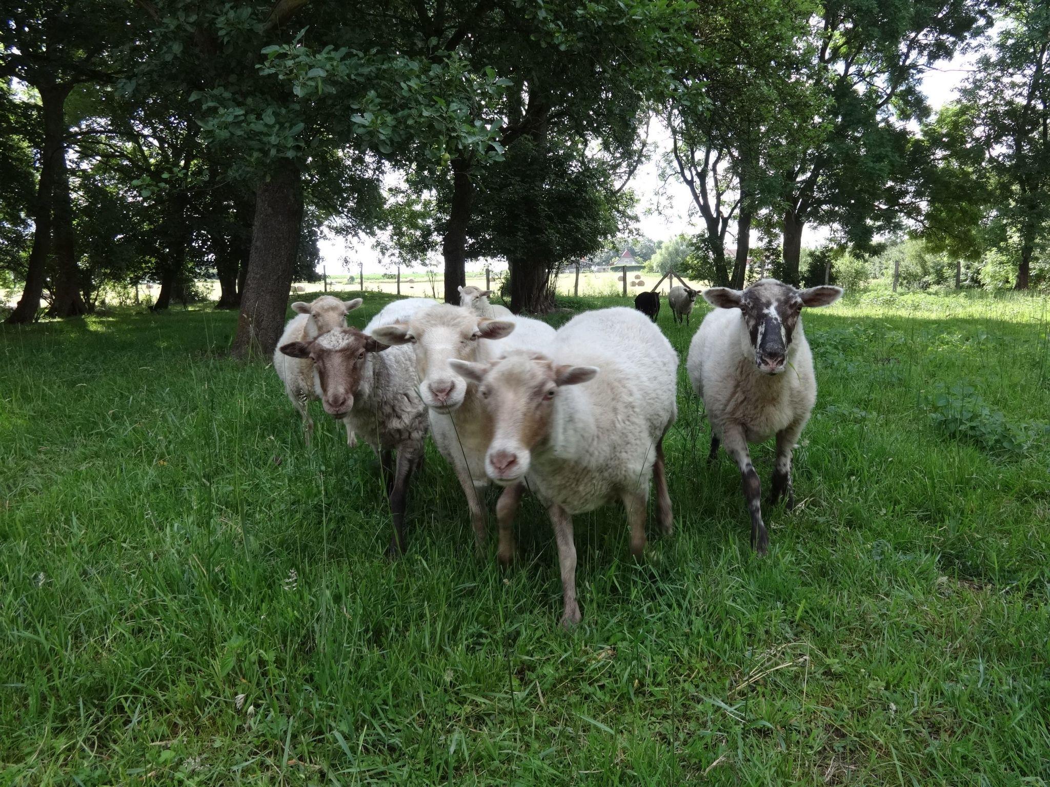 Das komplett eingezäunte Grundstück ist 10000 qm groß und hat Parkcharakter. In einem abgegrenzten Bereich befindet sich eine kleine Schafherde, die mit Brot (!) gefüttert werden darf. Es gibt mehrere schattige oder sonnige Sitz- und Liegemöglichkeiten. Ein Holzkohlegrill ist vorhanden.