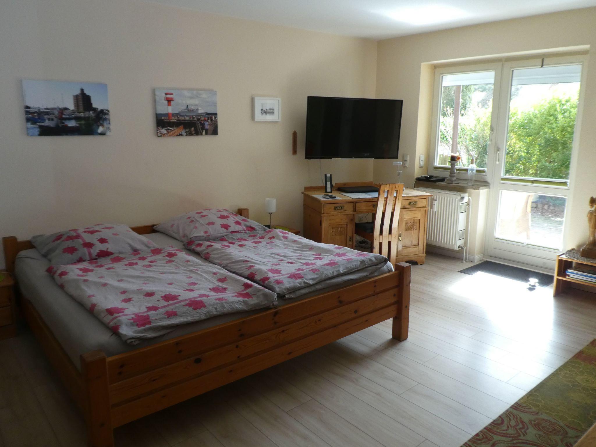 Die gemütliche Ferienwohnung wurde vor kurzem komplett neu renoviert. Der Wohn-/Schlafraum mit seinem großen Doppelbett (2m x 2m) bietet eine bequeme und großzügige Schlafmöglichkeit. Selbst wenn ein kleineres Kind nachts ins Bett krabbelt haben alle noch genügend Platz. Aber es steht auch ein Kinderreisebett (bis ca. 3-4 Jahre) zur Verfügung. Für eine dritte Person/größeres Kind steht eine gemütliche Schlafcouch zur Verfügung, Weiterhin sind ein Computer/Laptop mit WLAN-Internetzugang, CD/DVD-Player, ein großer Flachbildfernseher vorhanden. Eine sehr gut ausgestattete Einbauküche mit Ceran-Kochfeld, modernem Heißluft-Backofen, Spülmaschine, Mikrowelle, Kaffeemaschine, Heißwasserbereiter, Toaster etc. komplettiert die schöne Wohnung.