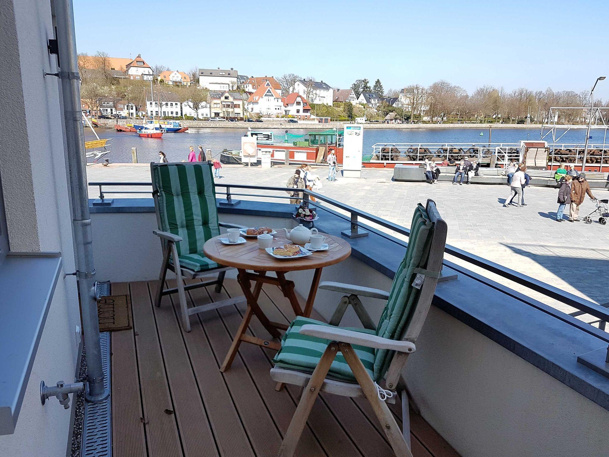 Moderne Ferienwohnung Lütte Bris mit traumhaftem Hafenblick und zwei Balkonen in Eckernförde.