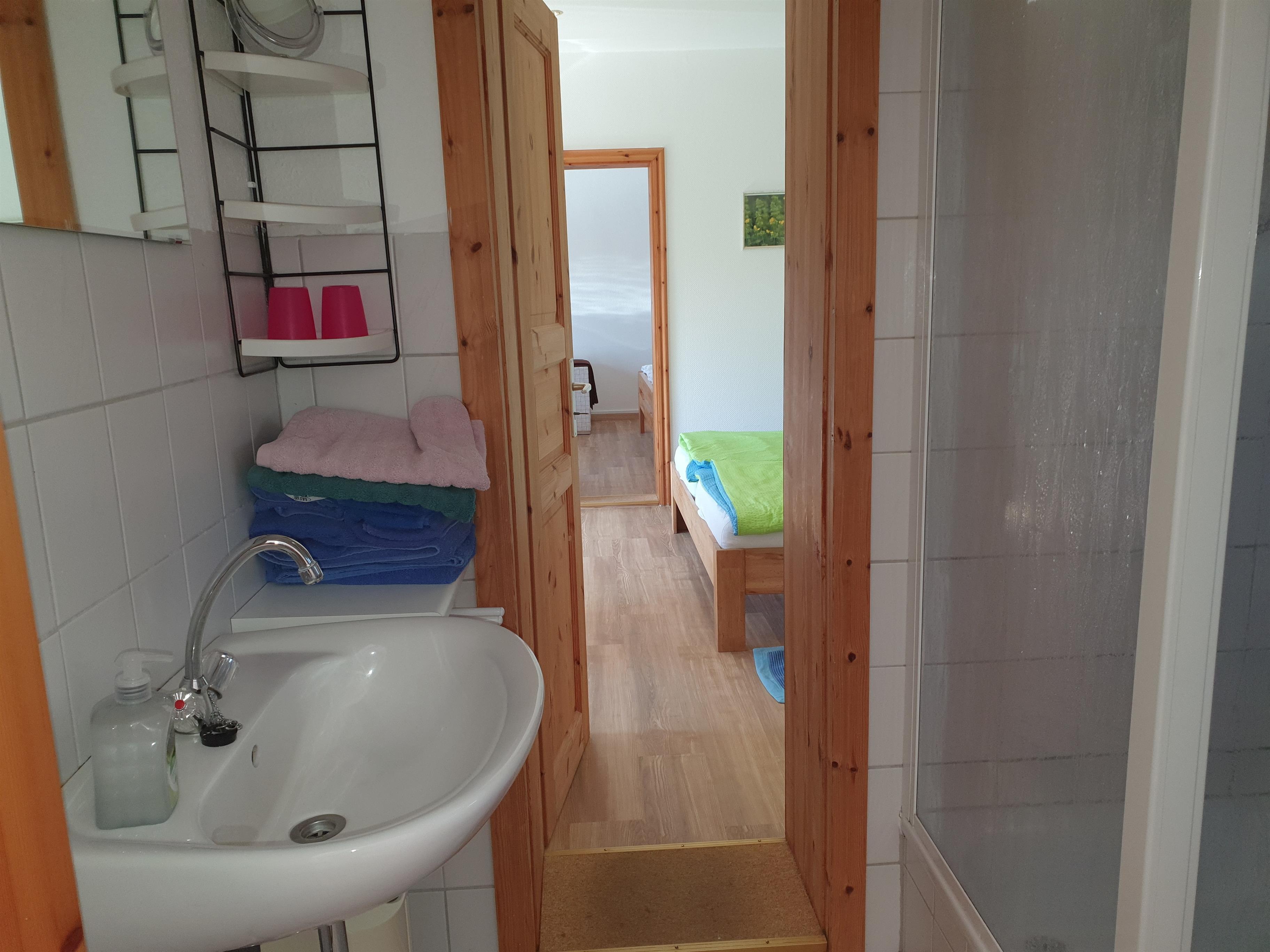 Komplettiert wird die Wohnung durch ein kleines Badezimmer mit Dusche und WC.
