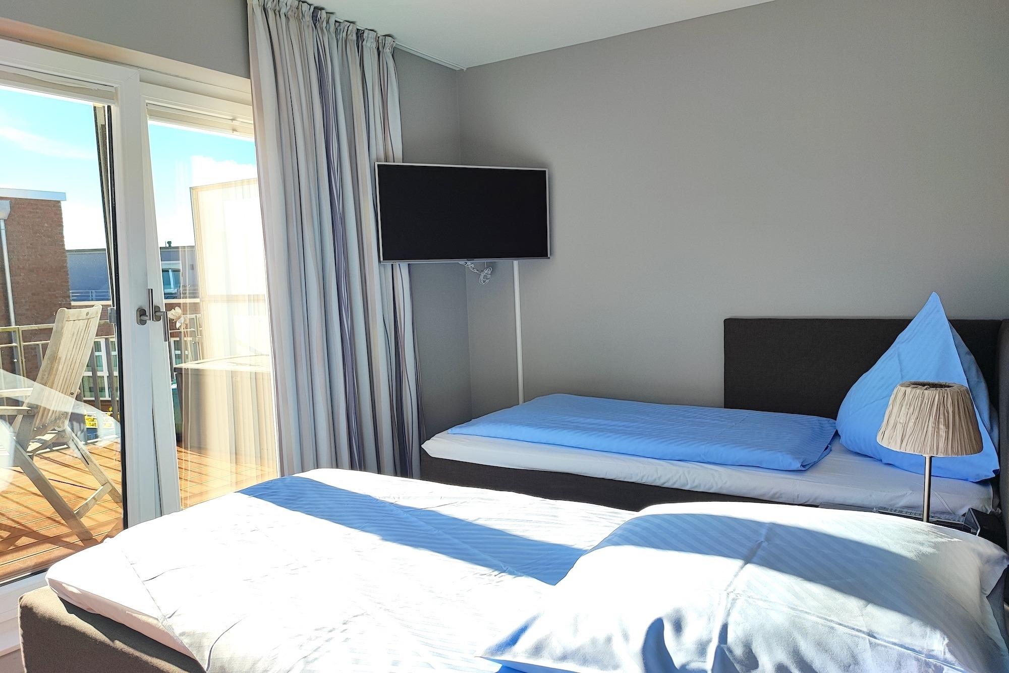 ? Wäschepakete optional wählbar gegen Gebühr: (Bettwäscheset/Handtuchset jeweils pro Aufenthalt/pro Person) können gegen eine Gebühr bestellt werden oder Selbst mitgebracht werden. Achten Sie bei Buchung an die gleiche Anzahl Wäschepakte wie gebuchten Personen. Ein Handtuchset pro Aufenthalt/pro Person ist ausgelegt für eine Woche (1 Duschtuch, 1 Handtuch), zusätzlich 1 Badvorlage pro Bad. Weitere Handtuchsets können bei längeren Aufenthalten z.B. ab dem 7. Tag gegen eine weitere Gebühr dazu bestellt werden ? 1 Topper 180x200; 2 Matratzen á 80x200 ? Babys und Kleinkinder bis zum vollendeten 2. Lebensjahr kostenfrei (Babyreisebett/Babyhochstuhl in der Wohnung vorhanden) ? Haustiere nicht erlaubt ? Parkplatz Nr. 23 in der Tiefgarage (inklusive) ? Höhe Toreinfahrt in die Tiefgarage ist 2,10 m ? Fahrradabstellraum (Gemeinschaftsraum) ? Nichtraucherwohnung