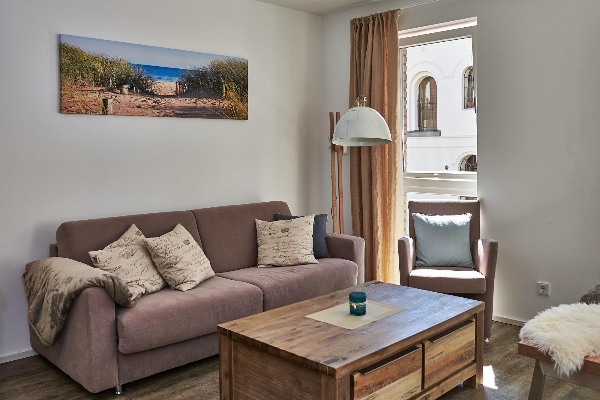 Die Ferienwohnung "Lachmöwe" (Bj. 2018, 4-Sterne) liegt nur 50m von der Hafenpromenade entfernt, auf der einen Seite schließen sich der Strand und seine lange Promenade an, auf der anderen Seite können Sie das Stadtzentrum und die naheliegende Gastronomie in wenigen Minuten erreichen.