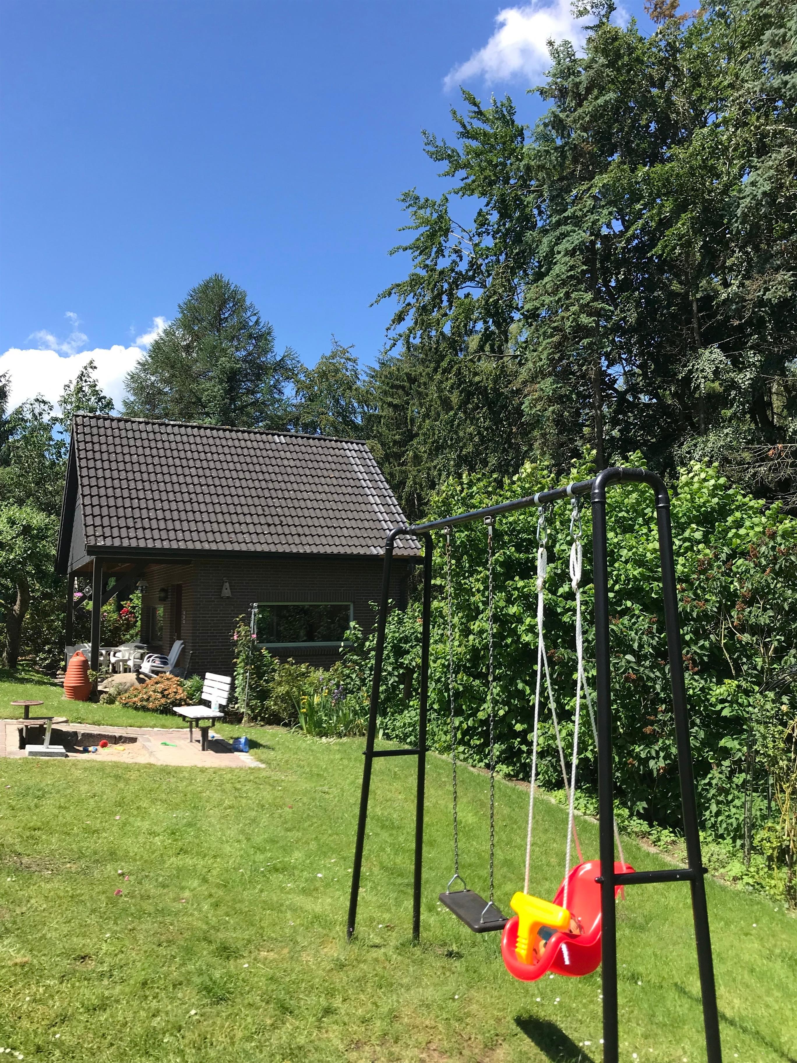 Für unsere kleinen Gäste haben wir eine Sandkiste, eine Schaukel und ein Wipptier - und reichlich Auslauf zum Toben und Spielen auf unserem großen Rasen - sicher eingezäunt und abseits der Strasse.
