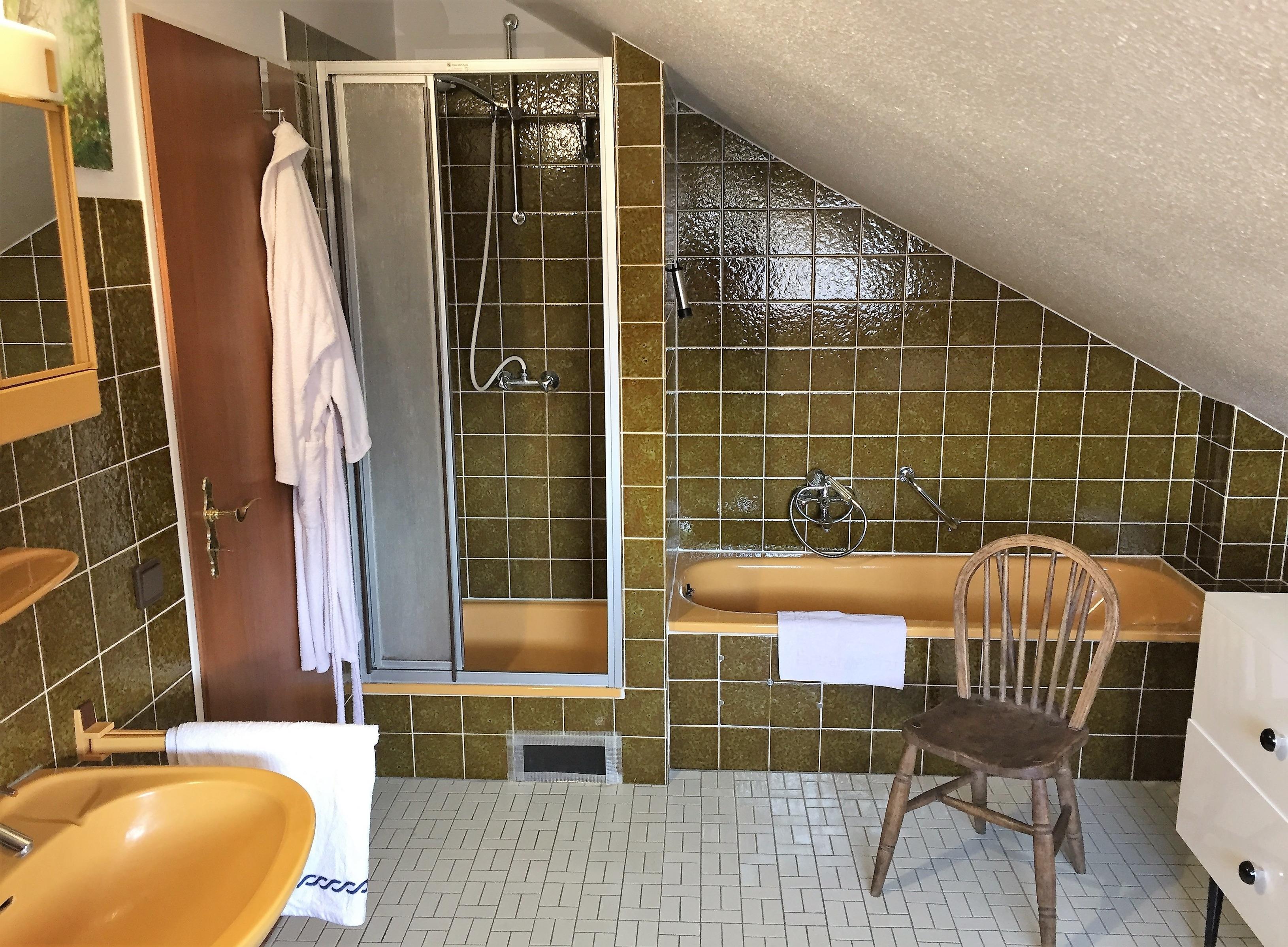 Leider ist die Wohnung nicht barrierefrei. 26 Stufen führen zum Eingang der Ferienwohnung Weitblick. Im Erdgeschoss liegen die Wohnküche, das Wohnzimmer und ein Badezimmer. Im ersten Obergeschoss befinden sich drei Schlafzimmer und ein weiteres Wannenbad.