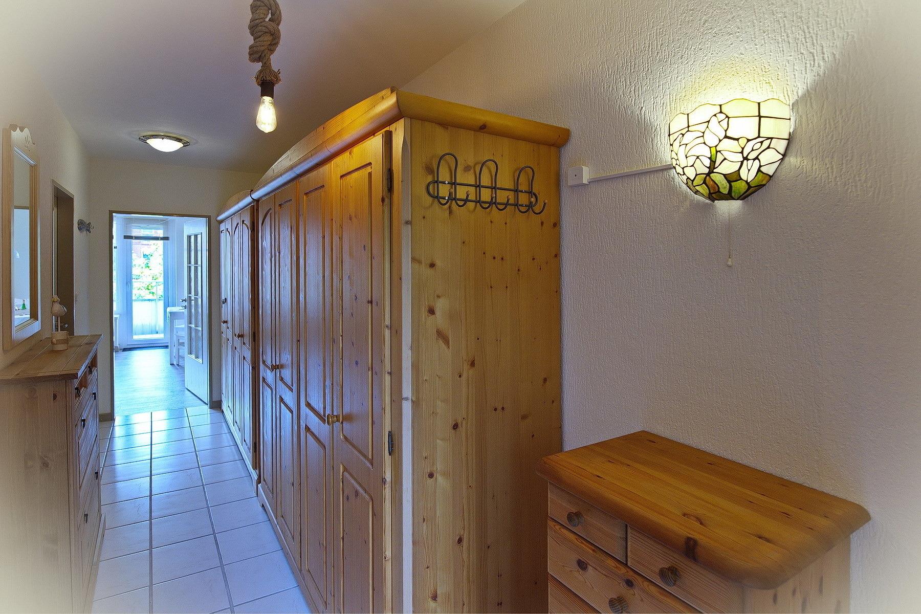 Das gemütliche 43 qm Ferienapartment befindet sich im 1. OG mit Balkon zur Straße. Beim Betreten der Wohnung empfängt Sie ein langer Flur, mit viel Staufläche und von dem alle Räume abgehen. Im Wohnzimmer lässt sich alles vereinbaren. Essen, Kochen, Relaxen, Entspannen. Die offen Pantry- Küche ist gut ausgestattet und verfügt über alle Dinge, die sie im Urlaub benötigen. Ein Esstisch für lädt zum gemeinsamen Frühstück und Abendessen für 2 Personen ein. Nehmen Sie Platz auf der Couch und genießen Sie Ihren Urlaub. Im kleinen kuscheligen Schlafzimmer (Doppelbett 180 x 200 cm, eine Matratze 180x200 cm) lässt sich der Abend entspannt ausklingen. Das innenliegende Badezimmer ist modern gefliest und verfügt über eine Dusche.