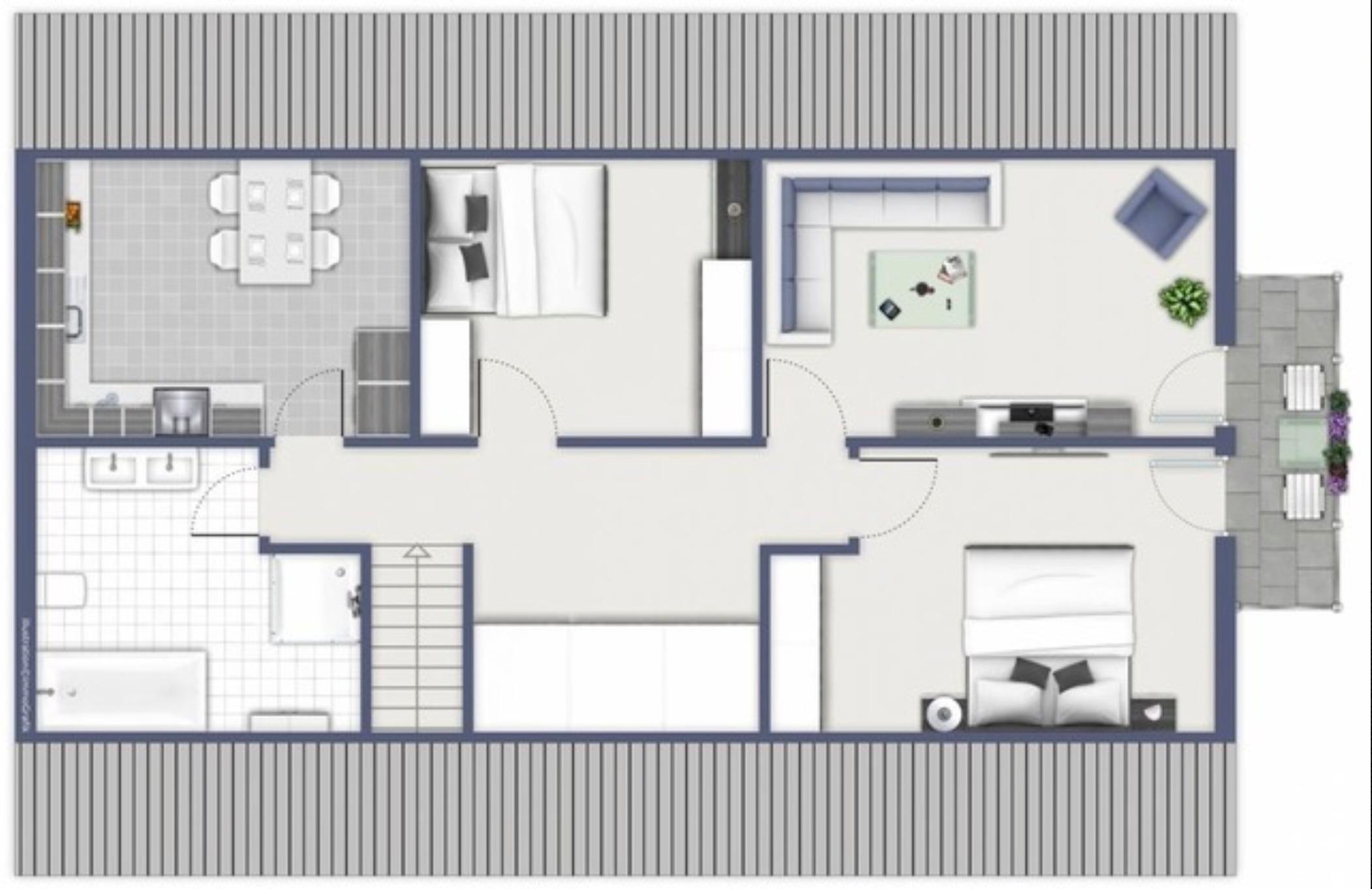 Die 65 qm-Wohnung befindet sich im 1. Stock und ist für bis zu 4 Personen komplett und hochwertig ausgestattet.