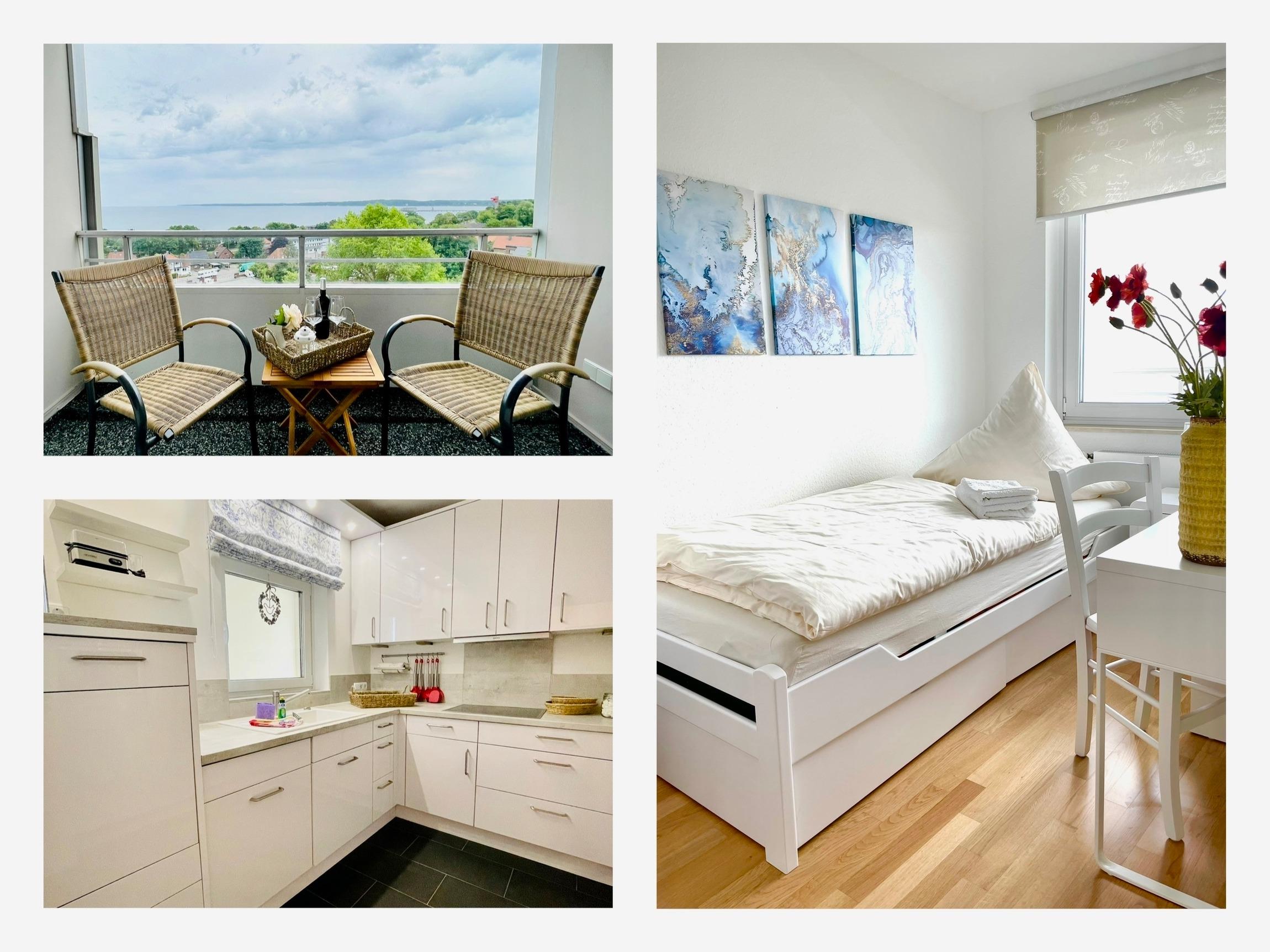 Hoch über den Dächern Eckernfördes erwartet Sie auf 90 m² eine außergewöhnliche Ferienwohnung mit einem atemberaubenden Panoramablick über die Eckernförder Bucht und das Windebyer Noor. Die Wohnung im Hochhaus Rendsburger Str. 11-15 wurde 2014 und 2022 grundlegend renoviert und mit hochwertigen Einbaumöbeln und Buchenholz-Parkett ausgestattet. Ein Tiefgaragenstellplatz steht Ihnen natürlich kostenlos zur Verfügung.