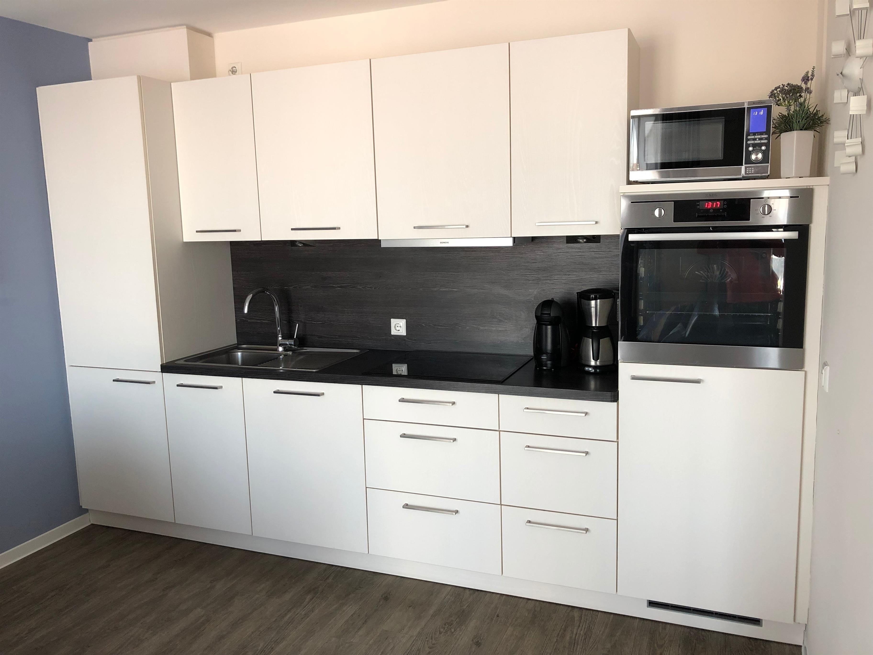 In unserer liebevoll maritim eingerichteten Nichtraucher-Ferienwohnung "Nordlicht" im 1. Obergeschoss können Sie die Seele baumeln lassen und den stressigen Alltag vergessen. Hier werden Sie sich von Anfang an wohlfühlen: Die ca. 46m² große Ferienwohnung verfügt über ein Wohn- und Esszimmer mit Einbauküche, ein Schlafzimmer mit komfortablem Boxsping-Doppelbett sowie Flur, Duschbad und Balkon. Sie wurde vom DTV mit vier Sternen zertifiziert und bietet Platz für zwei Erwachsene und einen kleinen Gast. Die vollwertige Marken-Einbauküche ist erstklassig ausgestattet: Kühlschrank mit Eisfach, Mikrowelle, Geschirrspüler, Ceran-Kochfeld, Backofen, Wasserkocher und Kaffeemaschine sind selbstverständlich vorhanden und lassen keine Wünsche offen, damit Sie sich bei uns wie zu Hause fühlen. Durch die beiden großen, bodentiefen Fenster können Sie von der gemütlichen Wohnzimmercouch aus direkt auf den Hafen schauen. In der kühleren Jahreszeit sorgt die Fußbodenheizung in der gesamten Wohnung für angenehme Wärme. In der Ferienwohnung sind zwei Flachbild-Fernseher mit Kabelanschluss, Blue Ray-Player und Stereo-Anlage vorhanden. Ebenso kann der WLAN-Anschluss kostenlos genutzt werden. Auf dem Balkon stehen für Sie bequeme Terrassenmöbel zur Verfügung. Hier können Sie in der Sonne frühstücken - ein Café mit Brötchenservice befindet sich im Erdgeschoss - oder einfach nur den unverbauten Blick auf die Eckernförder Bucht und den Yachthafen genießen. Zur Ferienwohnung gehört auch ein für Sie reservierter Pkw-Stellplatz im Parkhaus im Nachbargebäude, welcher im Mietpreis enthalten ist. Auch ein Abstellraum für Fahrräder ist vorhanden. Zwei Waschmaschinen und zwei Trockner befinden sich im Erdgeschoss. Selbstverständlich ist auch ein Fahrstuhl vorhanden. Für die kleinen Gäste stehen Kinderhochstuhl und Babybett bereit, die bei Bedarf optional gebucht werden können.