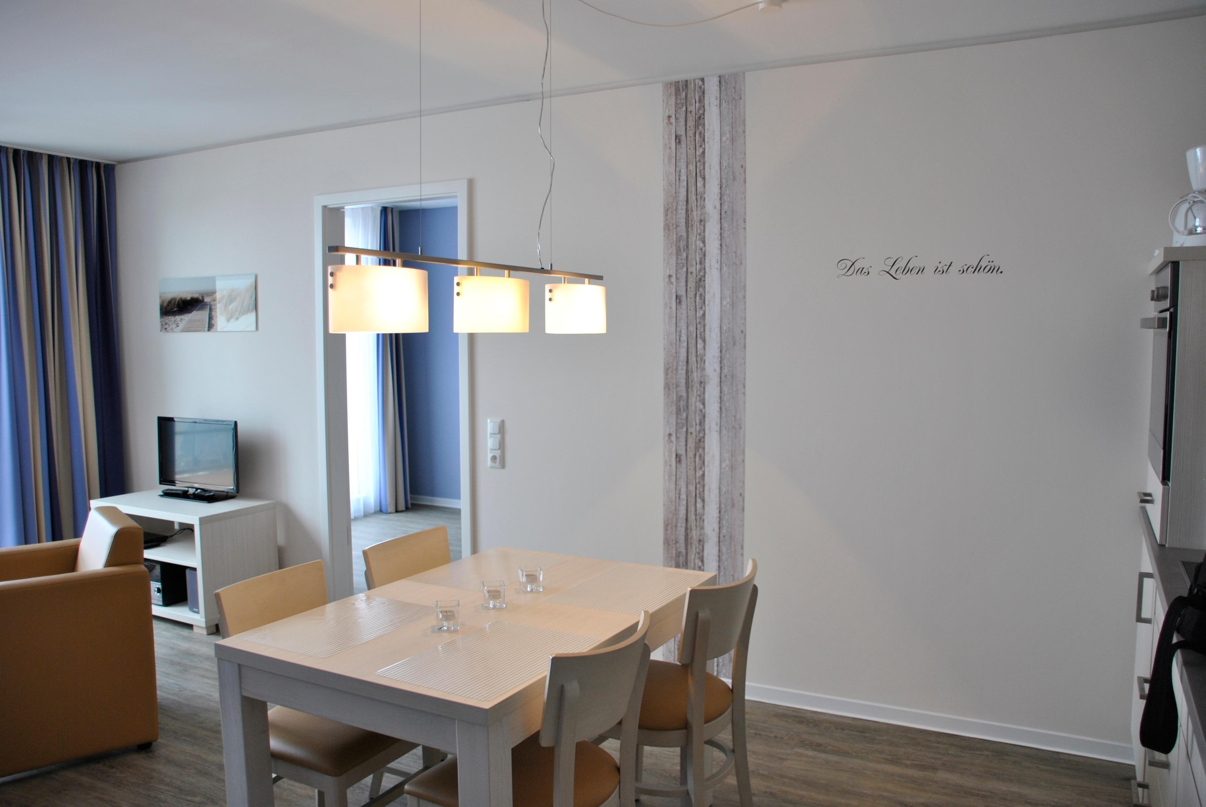 Treten Sie auf den Balkon und lassen Sie den Blick über Segelboote, Fischkutter und Sandstrand schweifen. Oder machen Sie es sich in Ihrem maritim eingerichteten Apartment bequem und genießen Ihre Auszeit mit Ausblick.