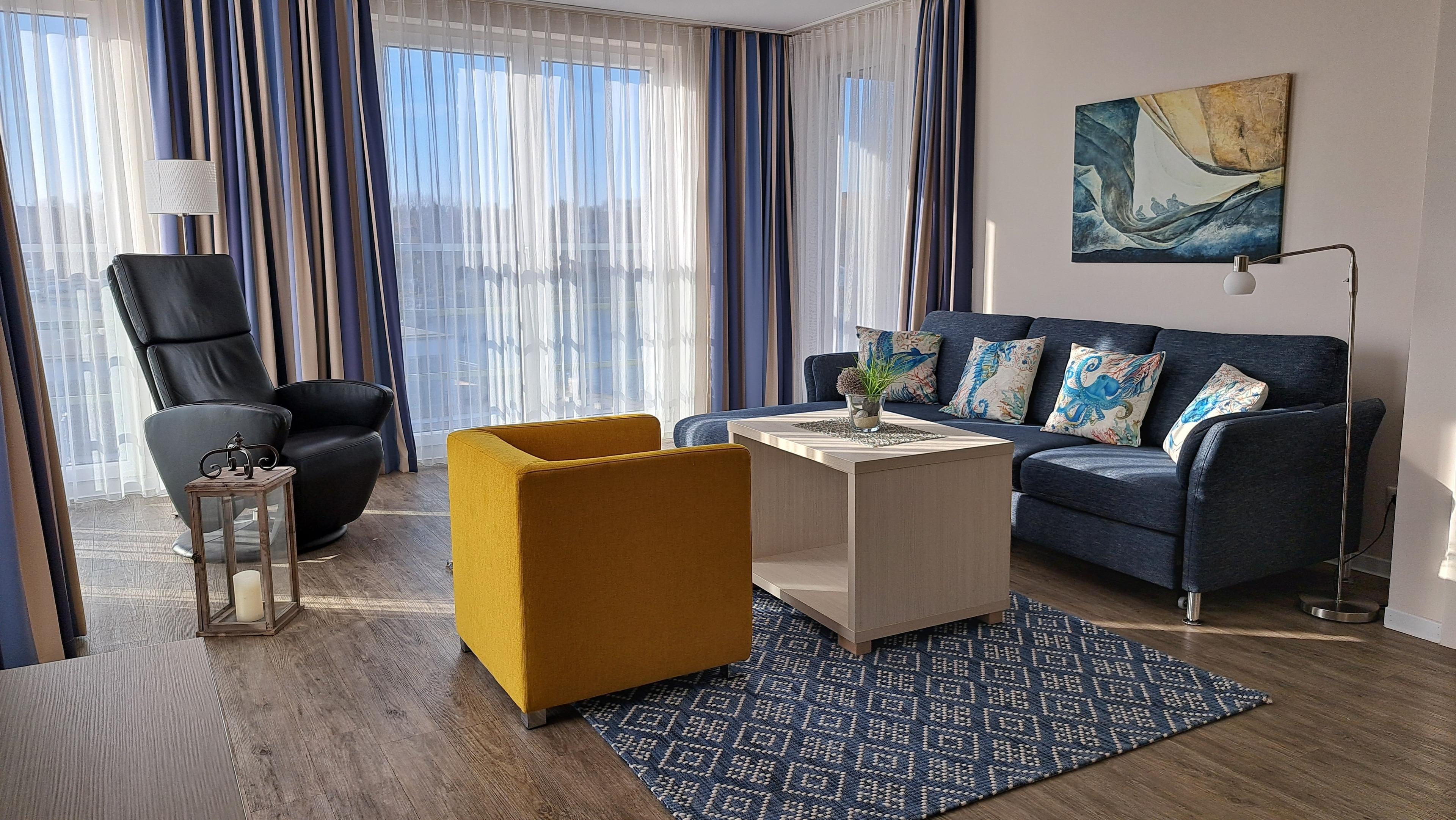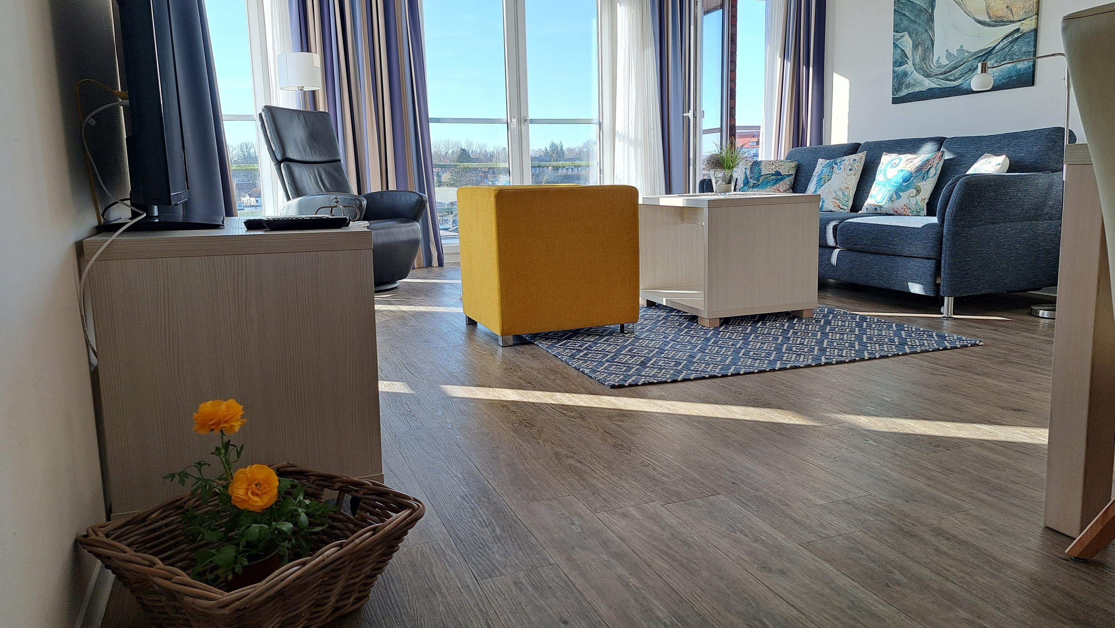 Modernes Apartment in Eckernförde mit Balkon, Seeblick und Nähe zum Strand und Hafen.