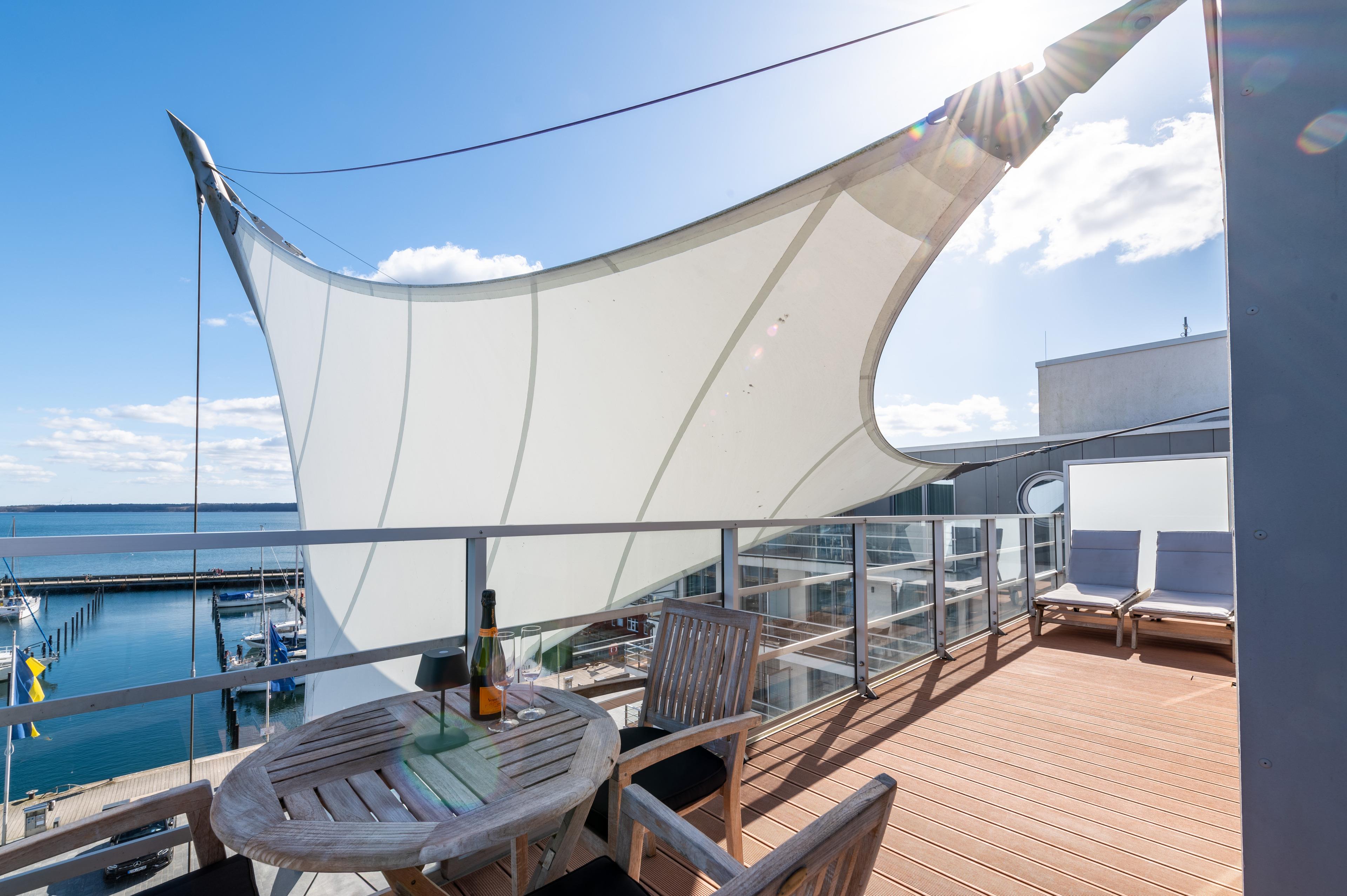 Entspannen können Sie jedoch auch einfach auf unserer Penthouse-Terrasse. Einen schöneren Ort, um mittendrin und dennoch ganz für sich zu lesen, zu entspannen, den Wolken, den Schiffen und dem bunten Treiben an Hafen und Strand zuzuschauen, können wir uns kaum vorstellen.