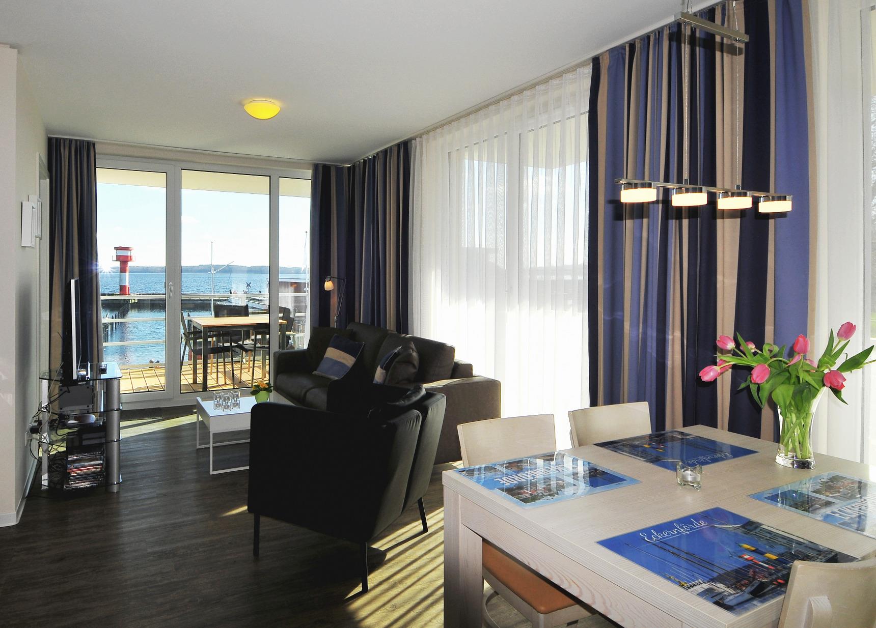 Moderne Ferienwohnung mit zwei Balkonen und Meerblick direkt am Jachthafen von Eckernförde.