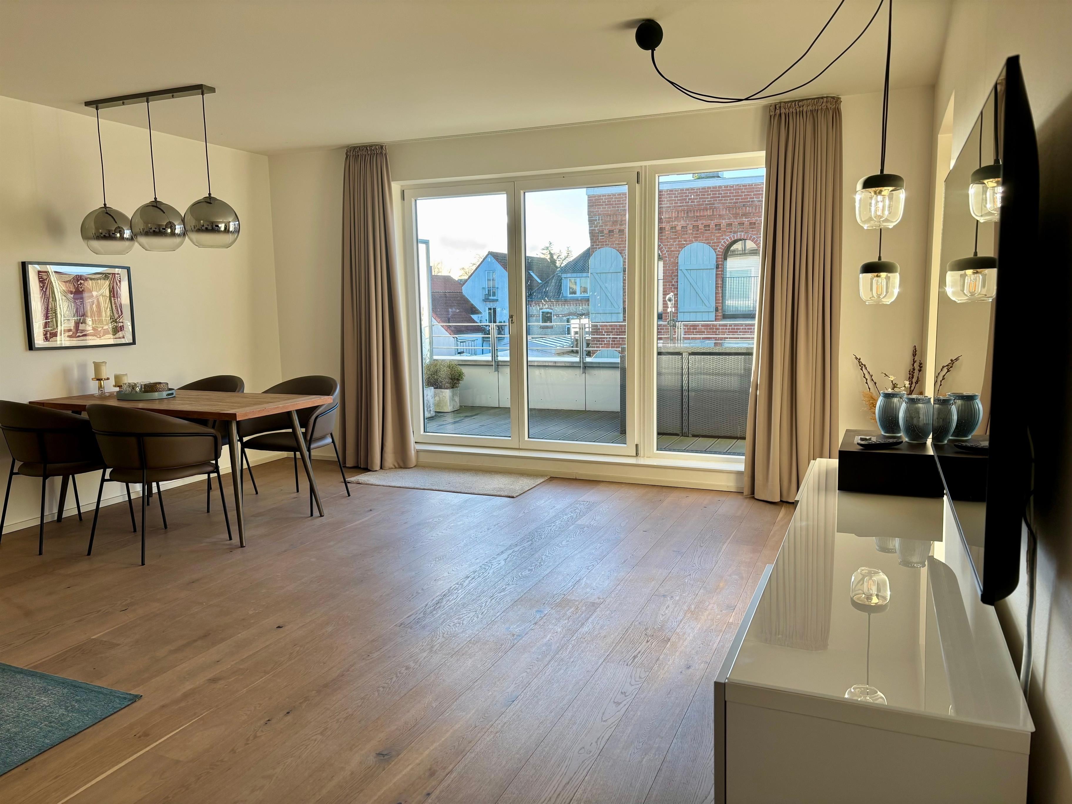 Auf knapp 100 qm ausgewogener Wohnfläche werden Sie ein voll ausgestattetes Urlaubsdomizil vorfinden. Die Wohnung befindet sich im Staffelgeschoss der Hafenallee mit einer Terrasse zum Jungfernstieg und Blick in den Hafen.