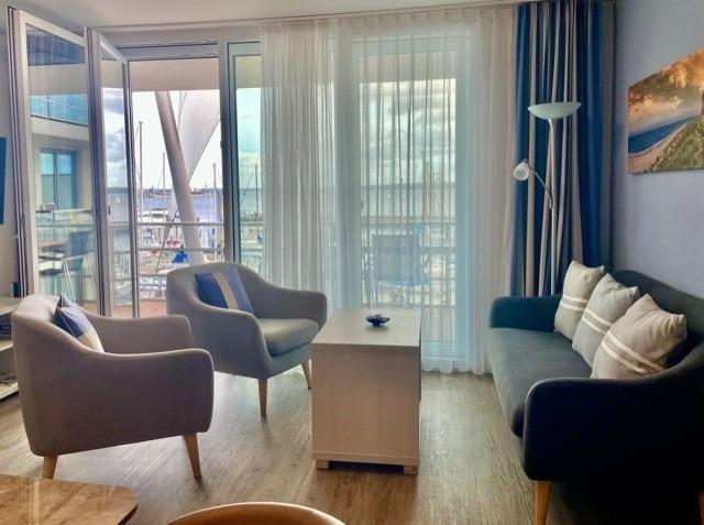 Hier können Sie sich wohlfühlen - Urlaub mit einem atemberaubenden Blick auf die Ostsee und den Jachthafen. Genießen Sie zu jeder Jahreszeit, da Ihnen die eigene Sauna zudem auch bei schlechtem Wetter das Apartment in eine Wewllness-Oase verwandelt. Bademäntel und Saunatücher stehen Ihnen kostenlos zur Verfügung. Im Winter sorgt die Fußbodenheizung für eine wohlige Wärme. Für Komfort sorgen zum Beispiel Boxspringbetten, ein eigener PKW-Stellplatz im nebenan liegenden Parkhaus, ein Fahrstuhl sowie eine eigene Waschmaschine.