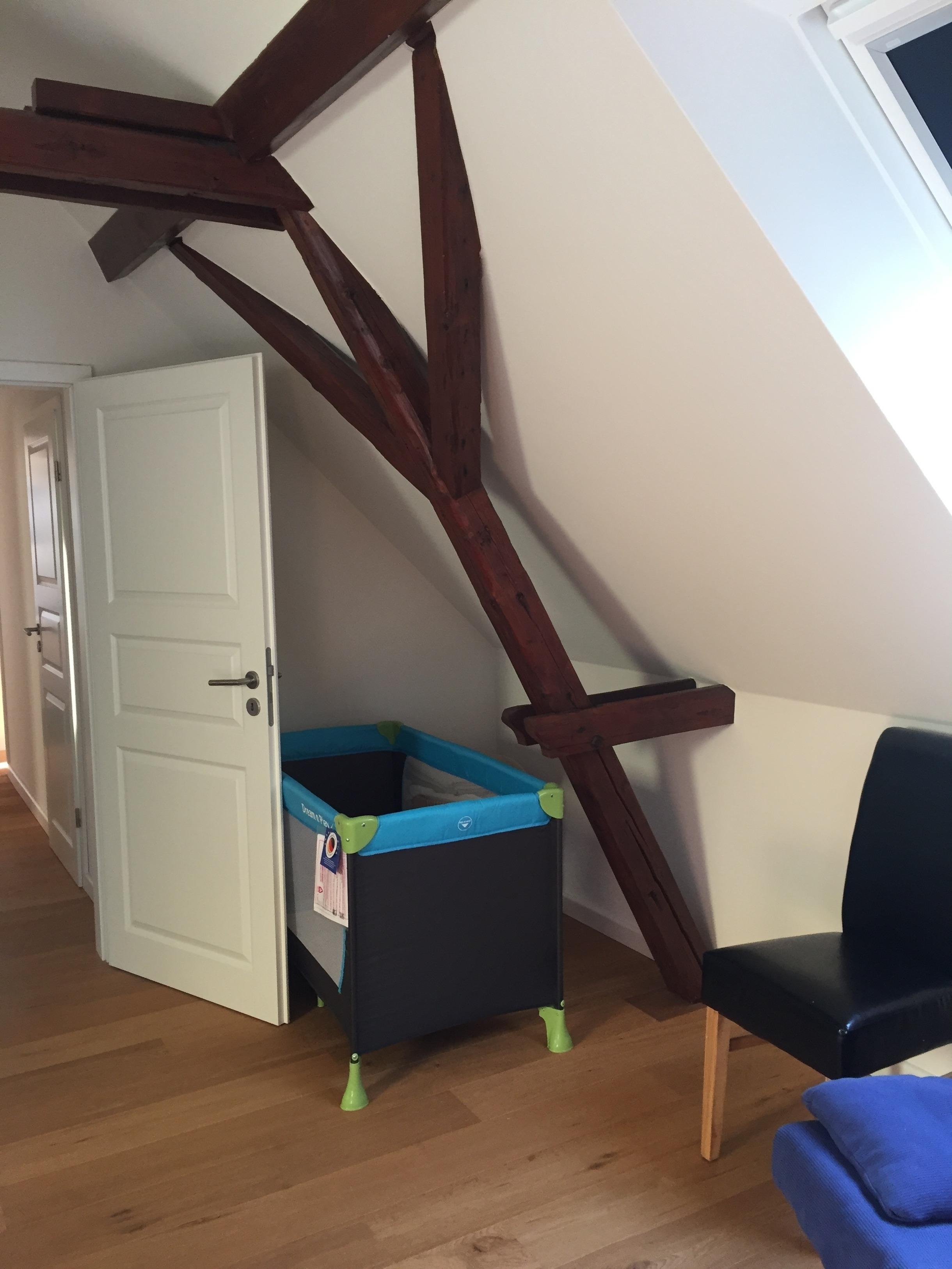 Ein Kinderhochstuhl und Babybett können bei Bedarf gestellt werden.