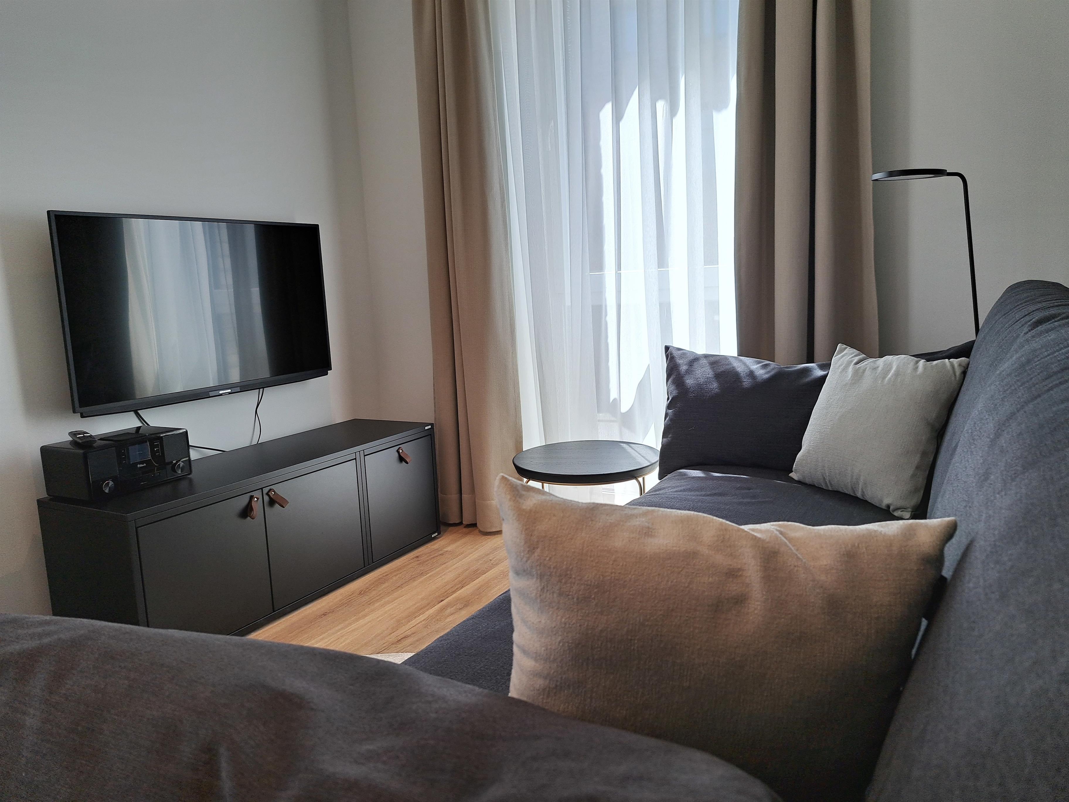 Moderne Ferienwohnung in Eckernförde, strandnah mit Balkon und barrierefreiem Komfort.