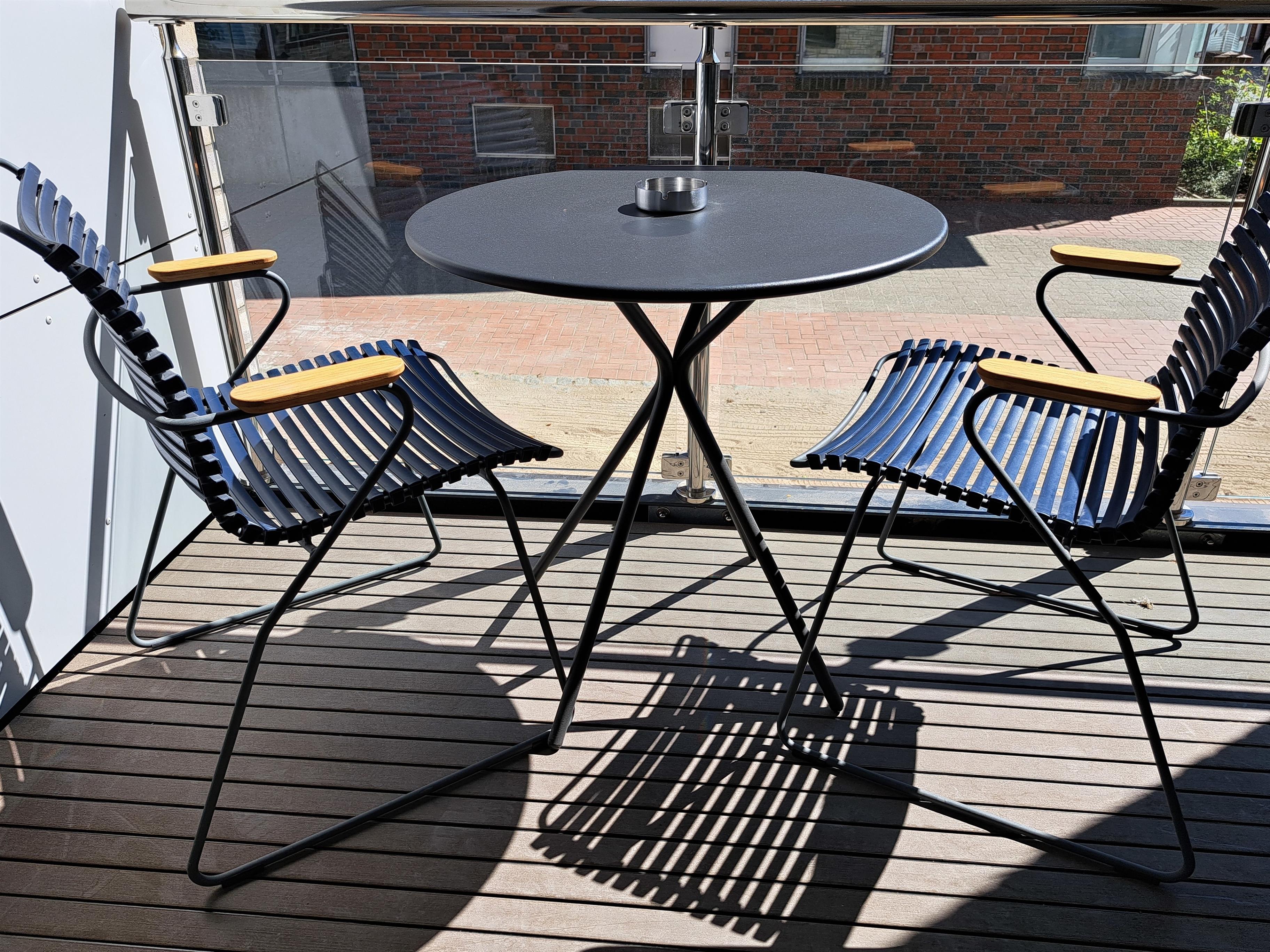 ECK AM MEER 2 verfügt über eine zum Meer und Strand hin seitliche Loggia von 4 qm mit südlicher Ausrichtung. Außenmöblierung ist selbstverständlich vorhanden.