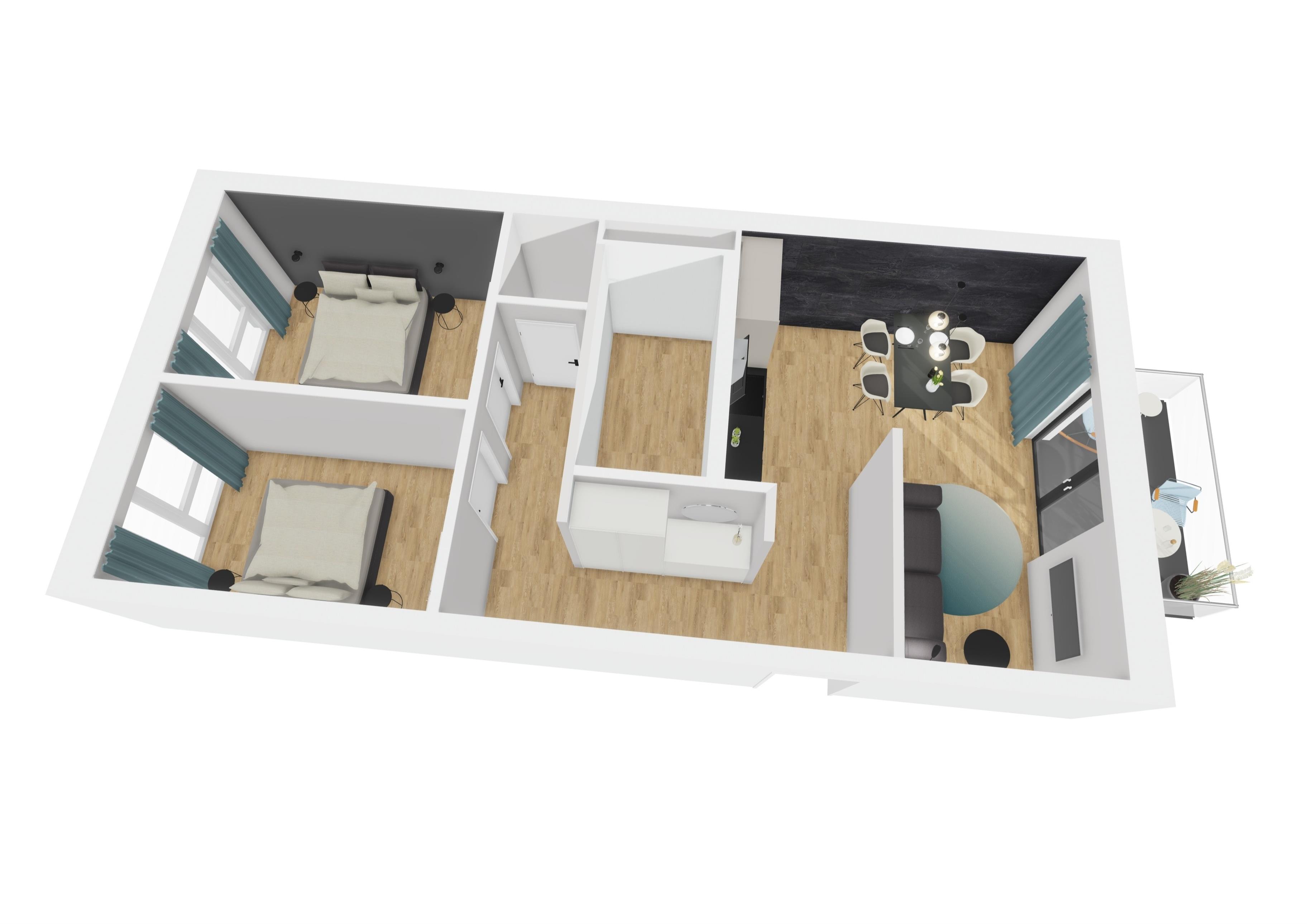Das ECK AM MEER 5 mit zwei Schlafzimmern verfügt über eine barrierefreie Wohnfläche verteilt auf 62 qm für bis zu 4 Personen.