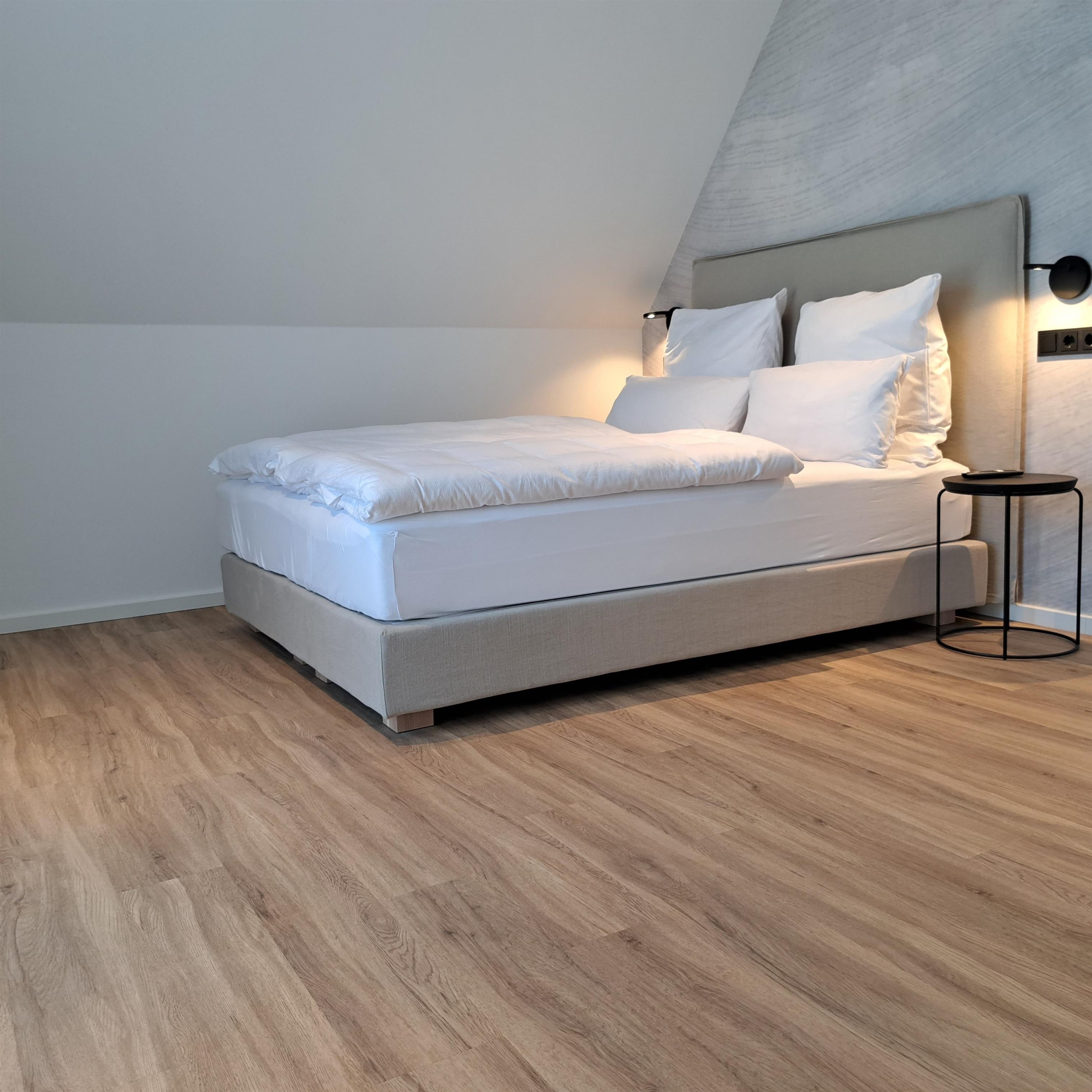Die Schlafbereiche sind mit hochwertigen Boxspringbetten und Kleiderschrank mit Zimmersafe eingerichtet. Eines der Schlafzimmer ist zusätzlich mit einem TV ausgestattet.