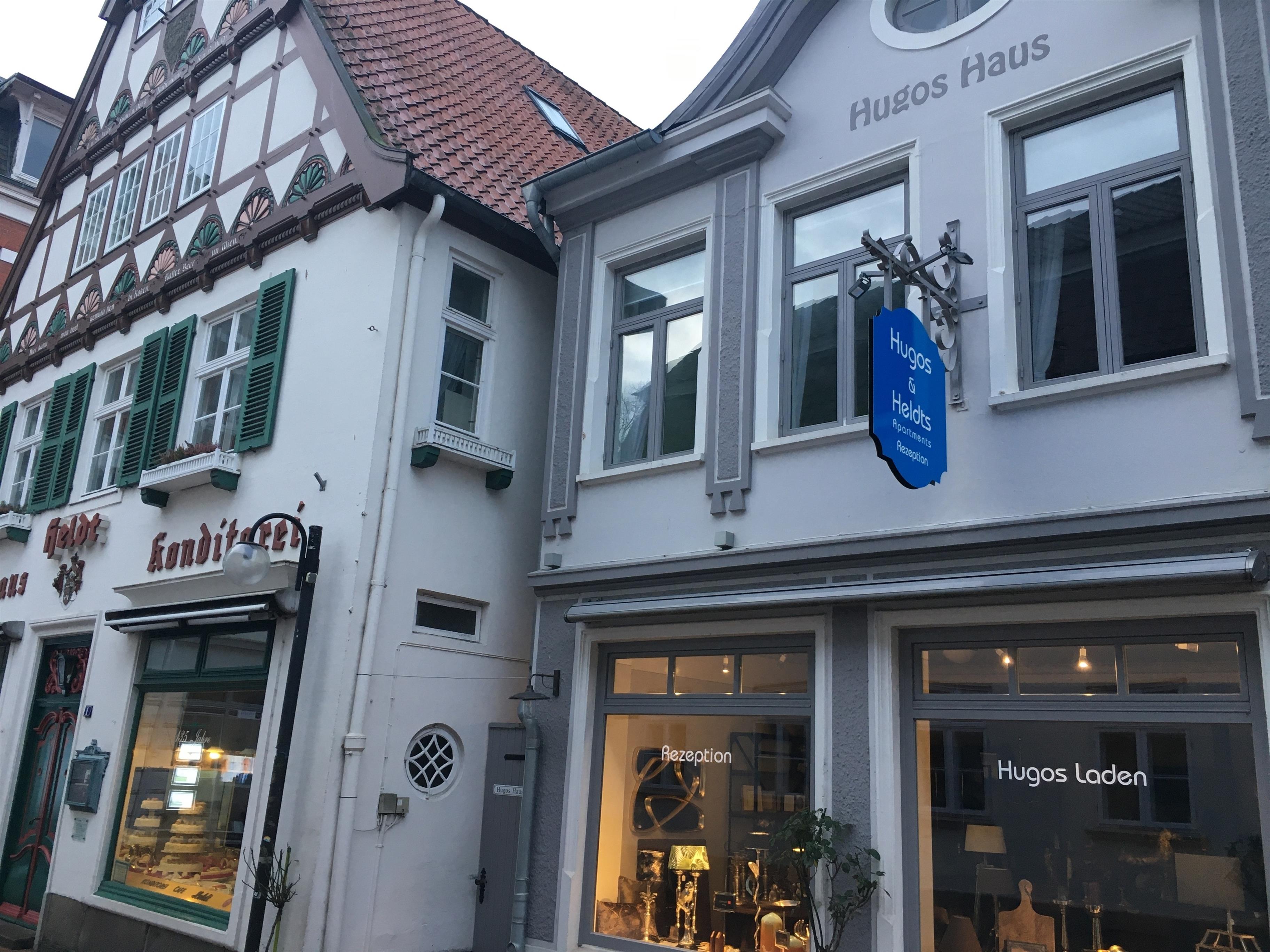 Die Rezeption befindet sich in "Hugos Laden" in der St. Nicolai-Straße 3. Für Anreisen nach 18.00 Uhr nutzen Sie bitte die Schlüsselausgabe auf der rückwärtigen Gebäudeseite (Gartenstrasse 29).