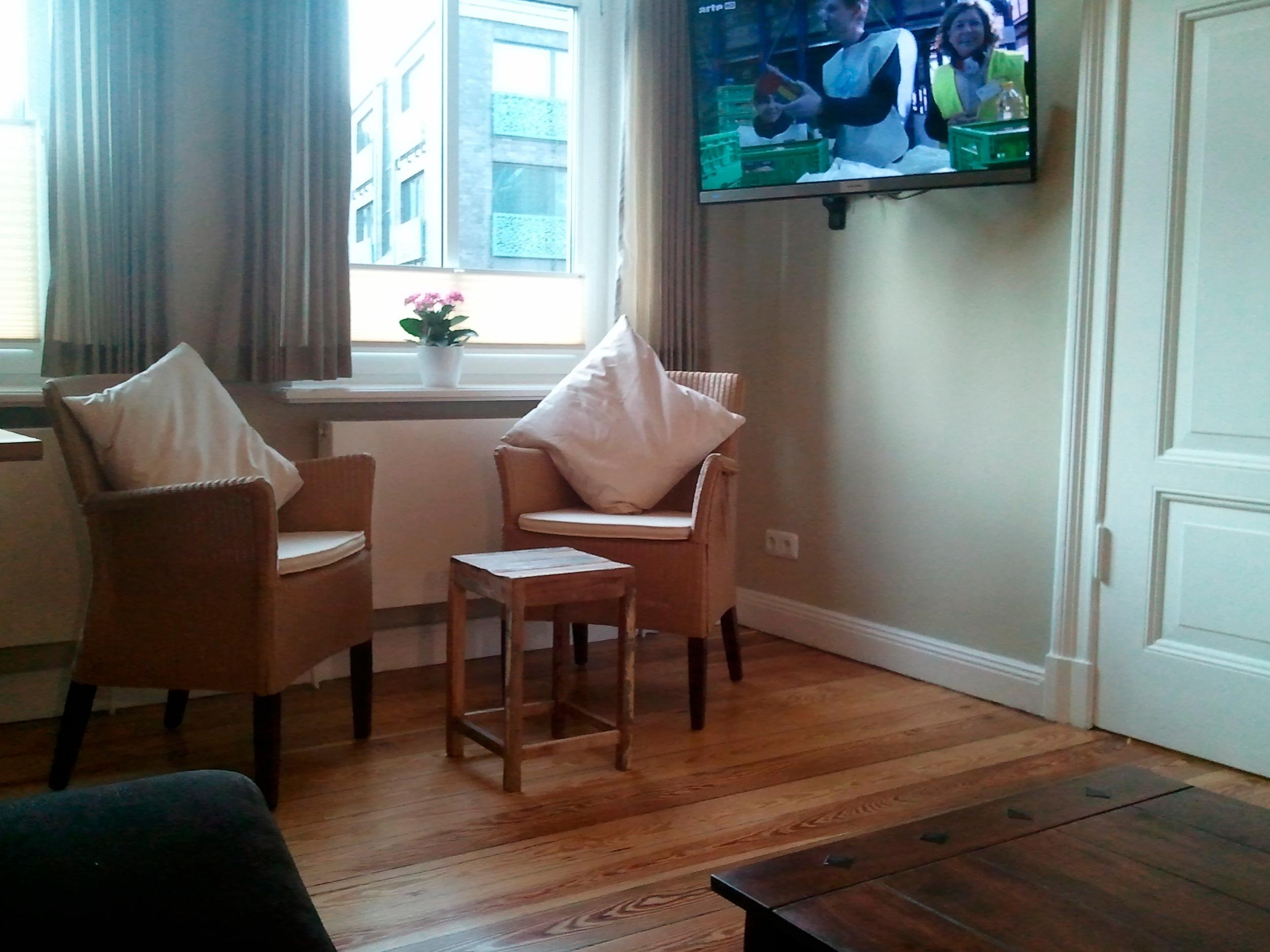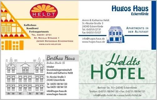 Die Rezeption befindet sich gegenüber von der Unterkunft im "Heldts Hotel" in der Berliner Straße Nr. 10.