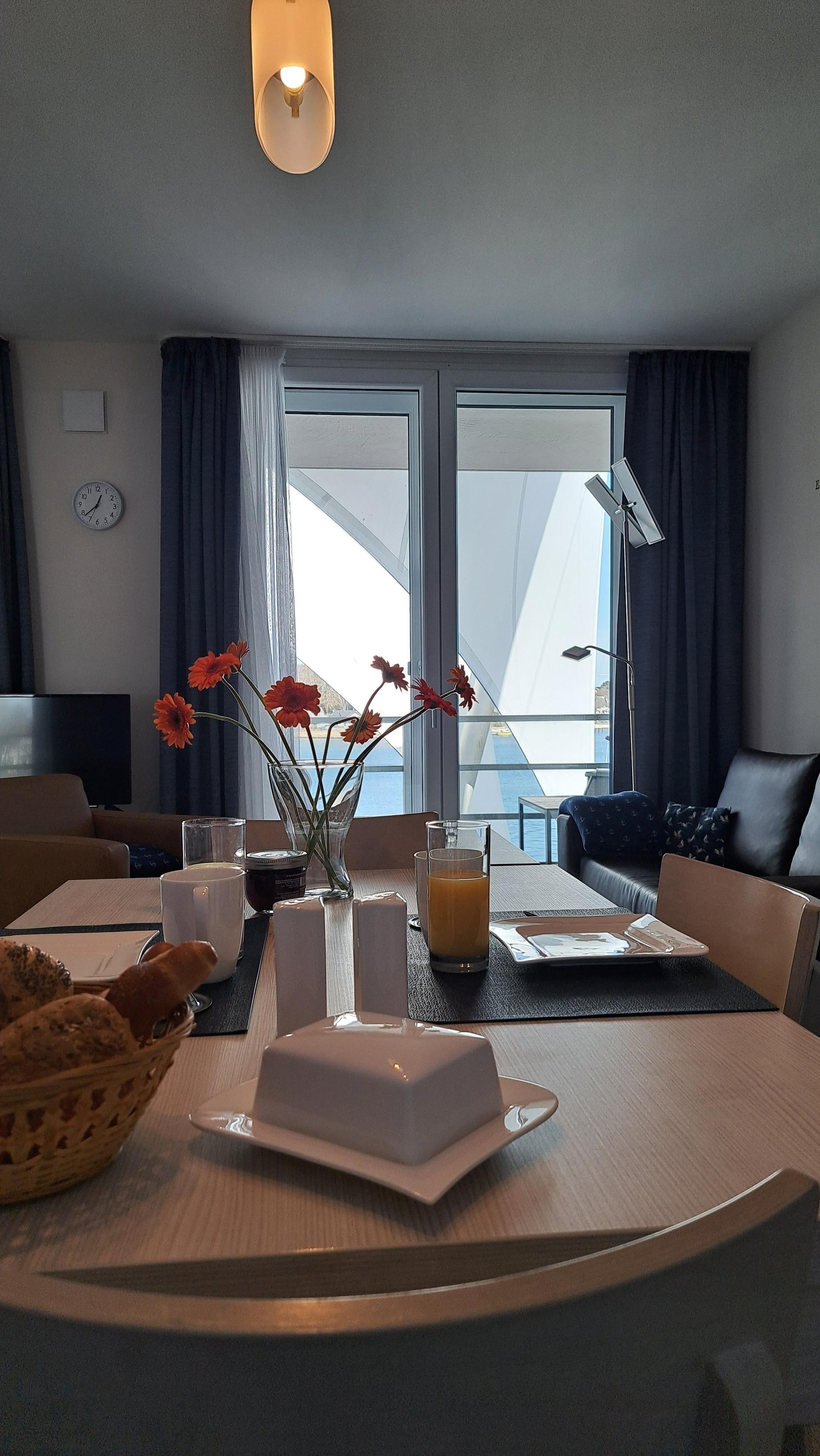 Genießen Sie den traumhaften Meerblick im stilvollen Apartmenthaus Hafenspitze in Eckernförde, nur 20 m vom Strand entfernt.