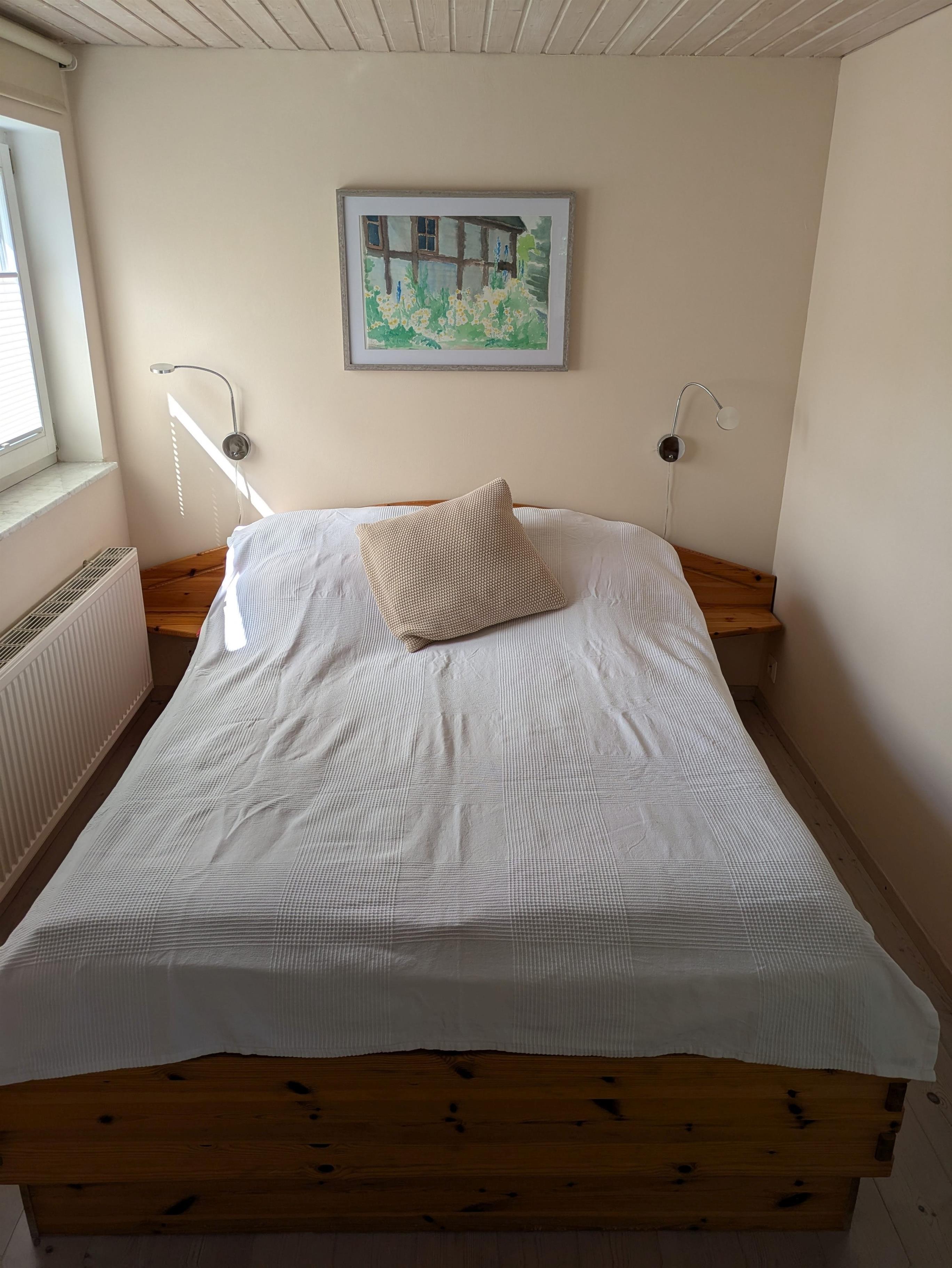 Die Ferienwohnung Klein, aber fein befindet sich im Eckernförder Ortsteil Borby im Souterrain unseres Hauses mit separatem Eingang. Die modern eingerichtete Wohnung ist sehr ruhig , aber doch zentral gelegen. Das gr0ße 1-Raumapartment verfügt über ein 1,40m breites Bett. Das separate Bad hat eine Standarddusche von 80x80 cm.