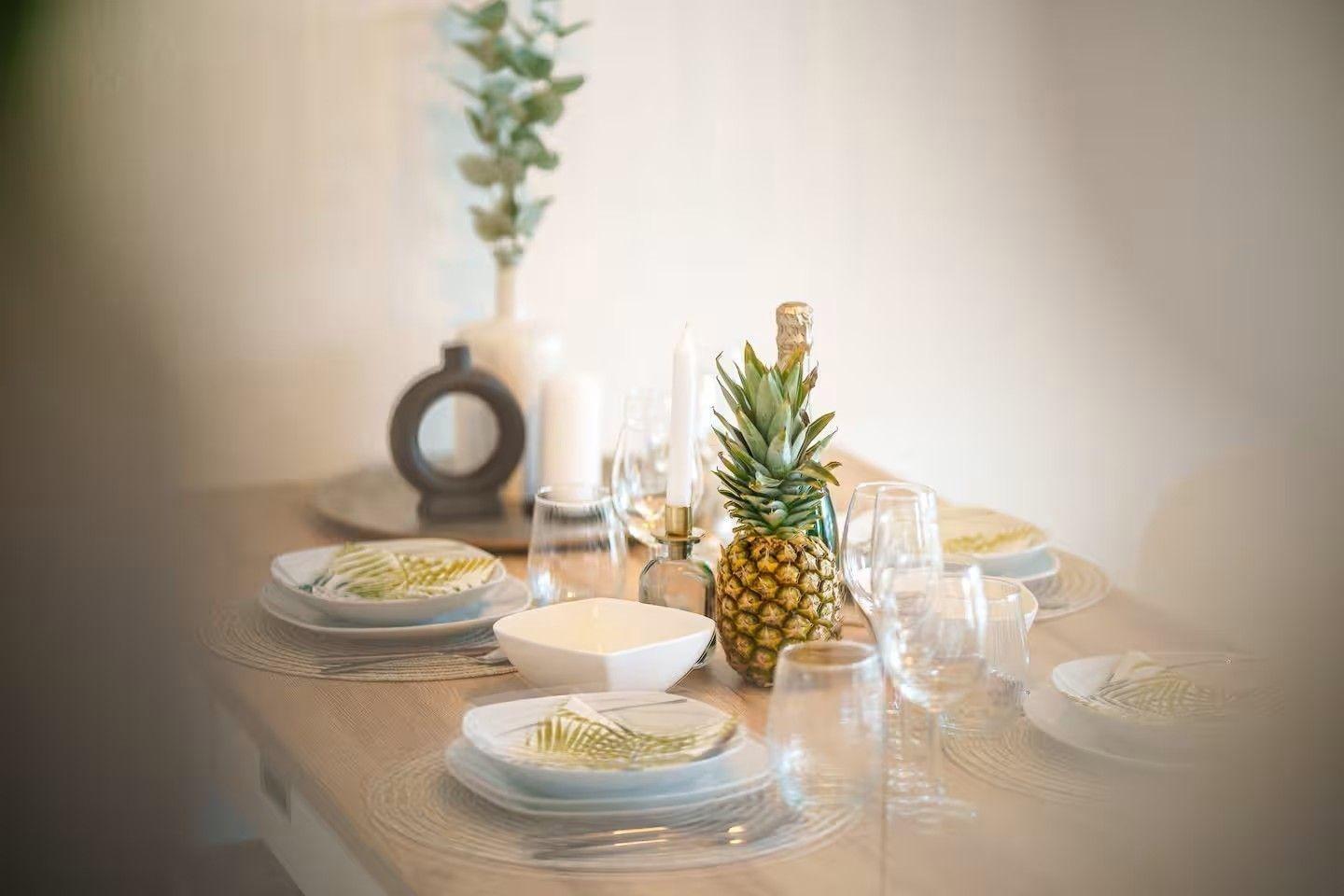 Des Weiteren bietet die Küche Kochutensilien wie Töpfe, Pfannen, Geschirr und Besteck, alles, was Sie zum Kochen benötigen. Ein großer Esstisch bietet Ihnen Platz für vier Personen.