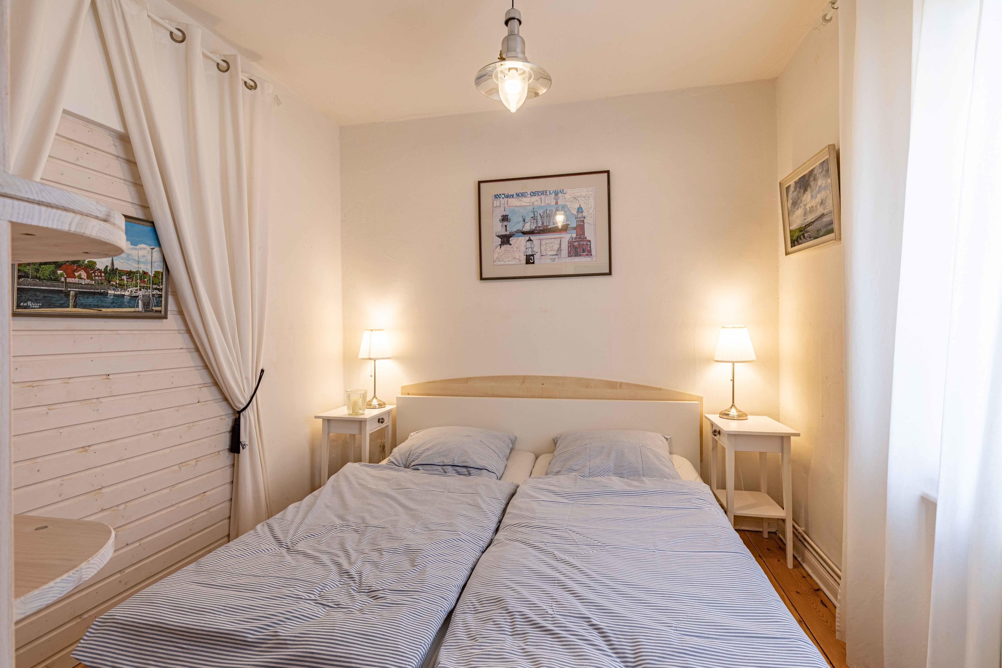 Gemütliche Ferienwohnung "Backbord" in Eckernförde-Borby, nur 100 m vom Borbyer Strand entfernt, mit musealem Charakter und Platz für 4 Personen.