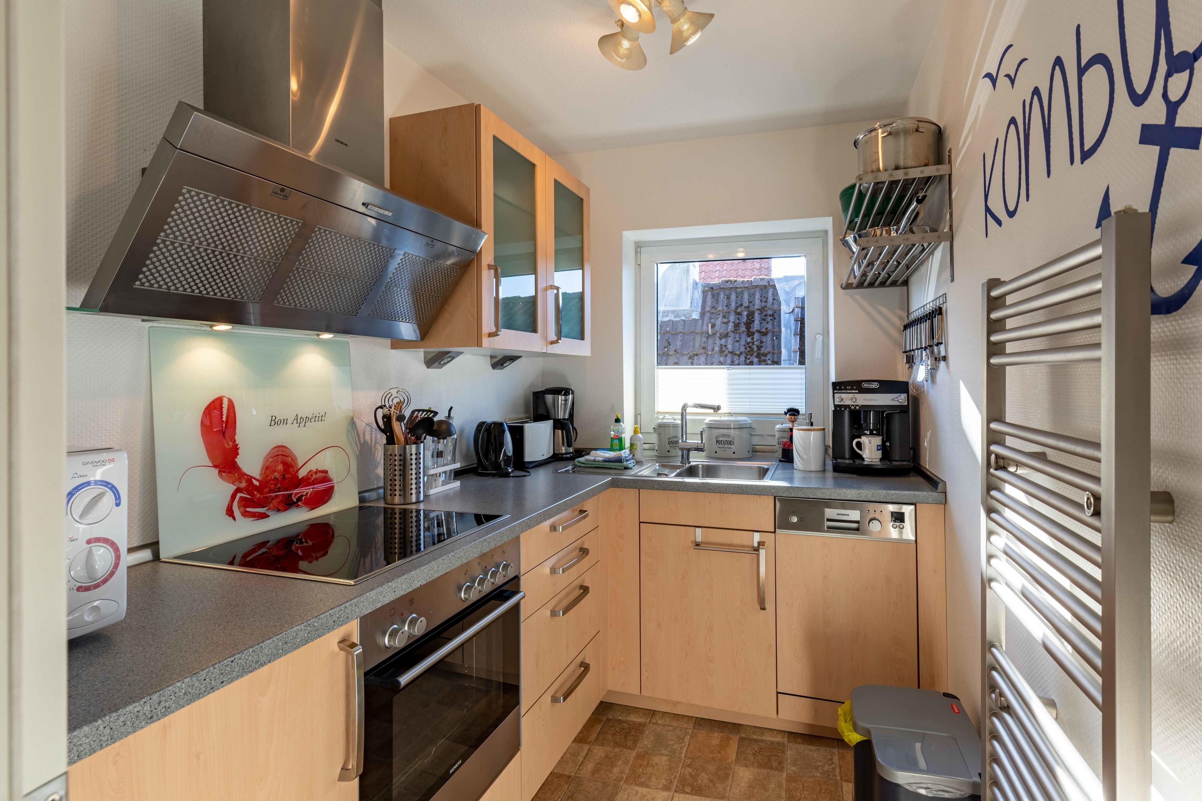 Die etwa 80 qm große Wohnung verfügt über einen Eingangsbereich mit Garderobe, Schuhablage und einem Regal, ein Wohn-Esszimmer, ein Schlafzimmer mit Doppelbett (180x200), Einbauschrank und Kommode. Ein zweites, kleineres Schlafzimmer mit einem Doppelbett (160x200) ist besonders für mitreisende Kinder geeignet, kann aber natürlich auch von Erwachsenen benutzt werden. Selbstverständlich bieten wir Ihnen eine volleingerichtete Küche (Spülmaschine, Mikrowelle, Ceranfeld, Kaffeemaschine usw.). Des Weiteren verfügt das Apartment über ein Badezimmer mit Dusche, WC und Waschbecken und einer Waschmaschine. Bei gutem Wetter - oder auch sonst - können Sie den zum Innenhof ausgerichteten Balkon nutzen und von dort aus den Blick über die Dächer der Eckernförder Altstadt genießen. Sollte es dazu zu kühl sein, sorgt ein Kaminofen im Wohnzimmer für wohlige Wärme. Zudem stehen zwei zusätzliche Schlafplätze (160x200) auf der Schlafcouch im Wohn-Esszimmer zur Verfügung. Sonderarrangements auf Anfrage.