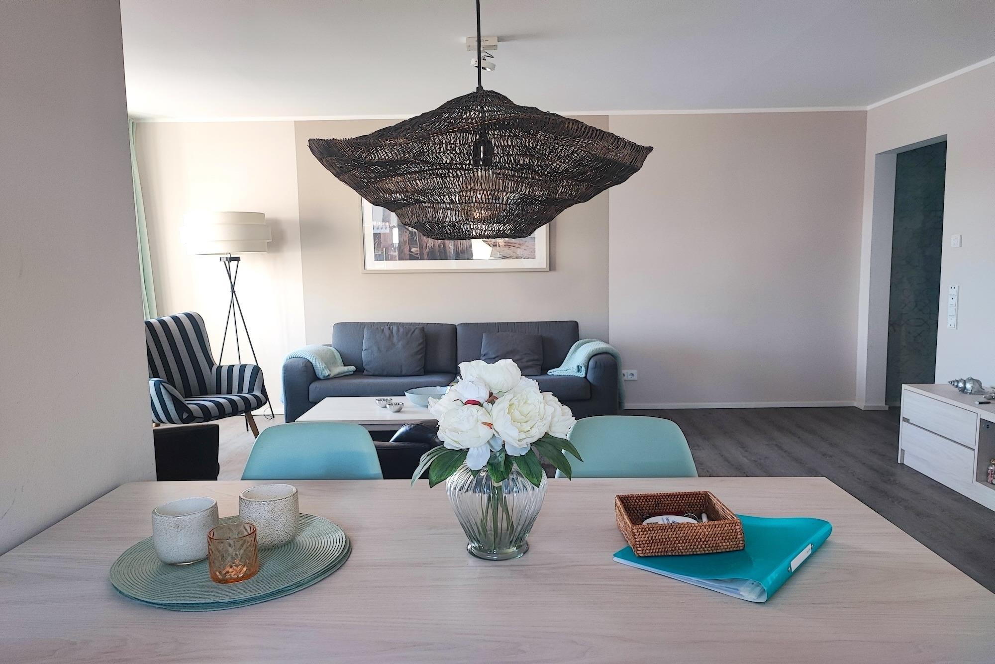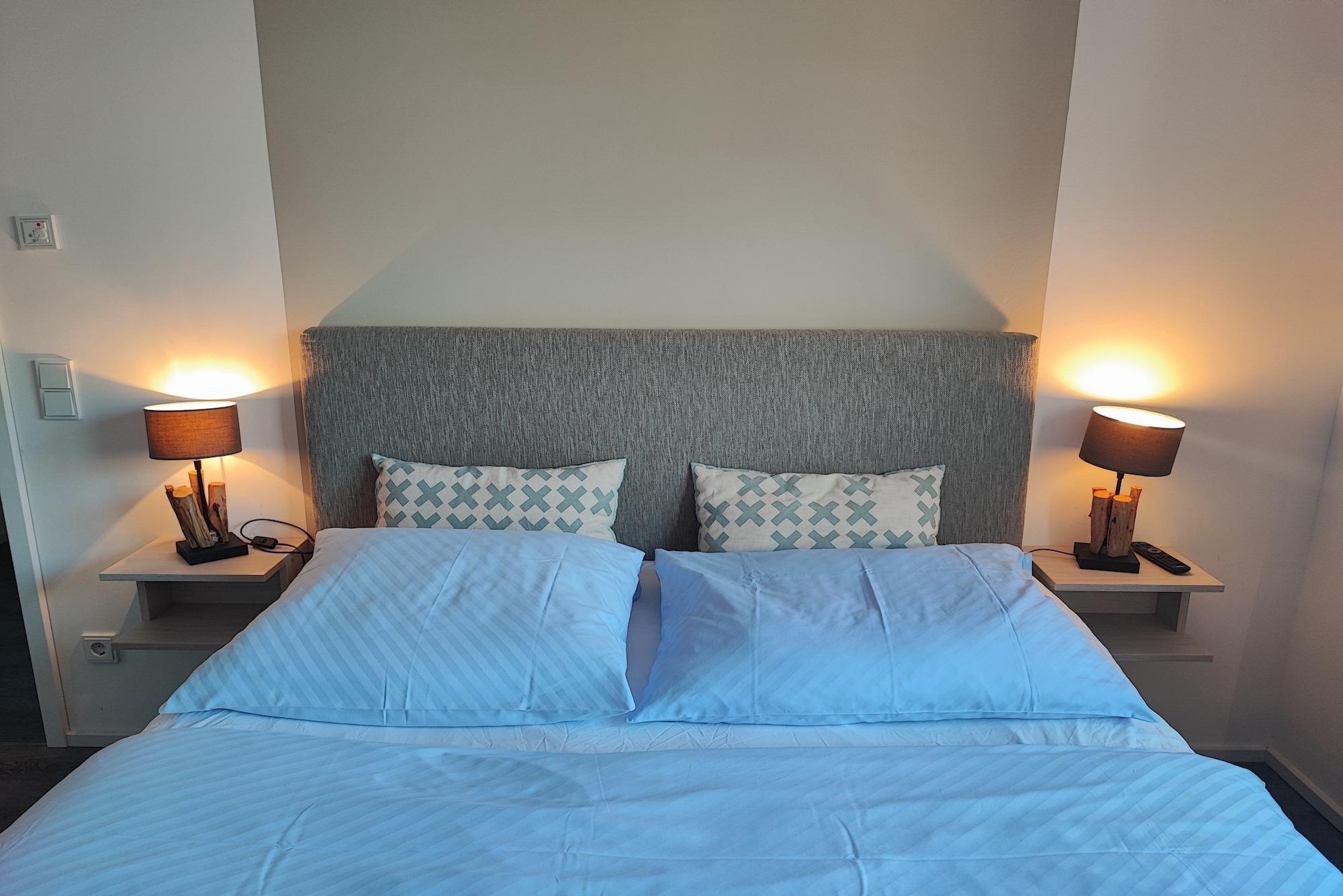 ? Wäschepakete optional wählbar gegen Gebühr: (Bettwäscheset/Handtuchset jeweils pro Aufenthalt/pro Person) können gegen eine Gebühr bestellt werden oder Selbst mitgebracht werden. Achten Sie bei Buchung an die gleiche Anzahl Wäschepakte wie gebuchten Personen. Ein Handtuchset pro Aufenthalt/pro Person ist ausgelegt für eine Woche (1 Duschtuch, 1 Handtuch), zusätzlich 1 Badvorlage pro Bad. Weitere Handtuchsets können bei längeren Aufenthalten z.B. ab dem 7. Tag gegen eine weitere Gebühr dazu bestellt werden ? 2 Topper auf den Matratzen 180x200 und 160x200 ? Babys und Kleinkinder bis zum vollendeten 2. Lebensjahr kostenfrei (Verleih Babyreisebett gegen Gebühr, Babyhochstuhl kostenfrei) ? Haustiere willkommen; müssen dazu gebucht werden (Miete Hund und Endreingung Hund) ? Parkplatz Nr.07 in der Tiefgarage (inklusive) ? Höhe Toreinfahrt in die Tiefgarage ist 2,00 m ? Fahrradabstellraum (Gemeinschaftsraum) ? Nichtraucherwohnung