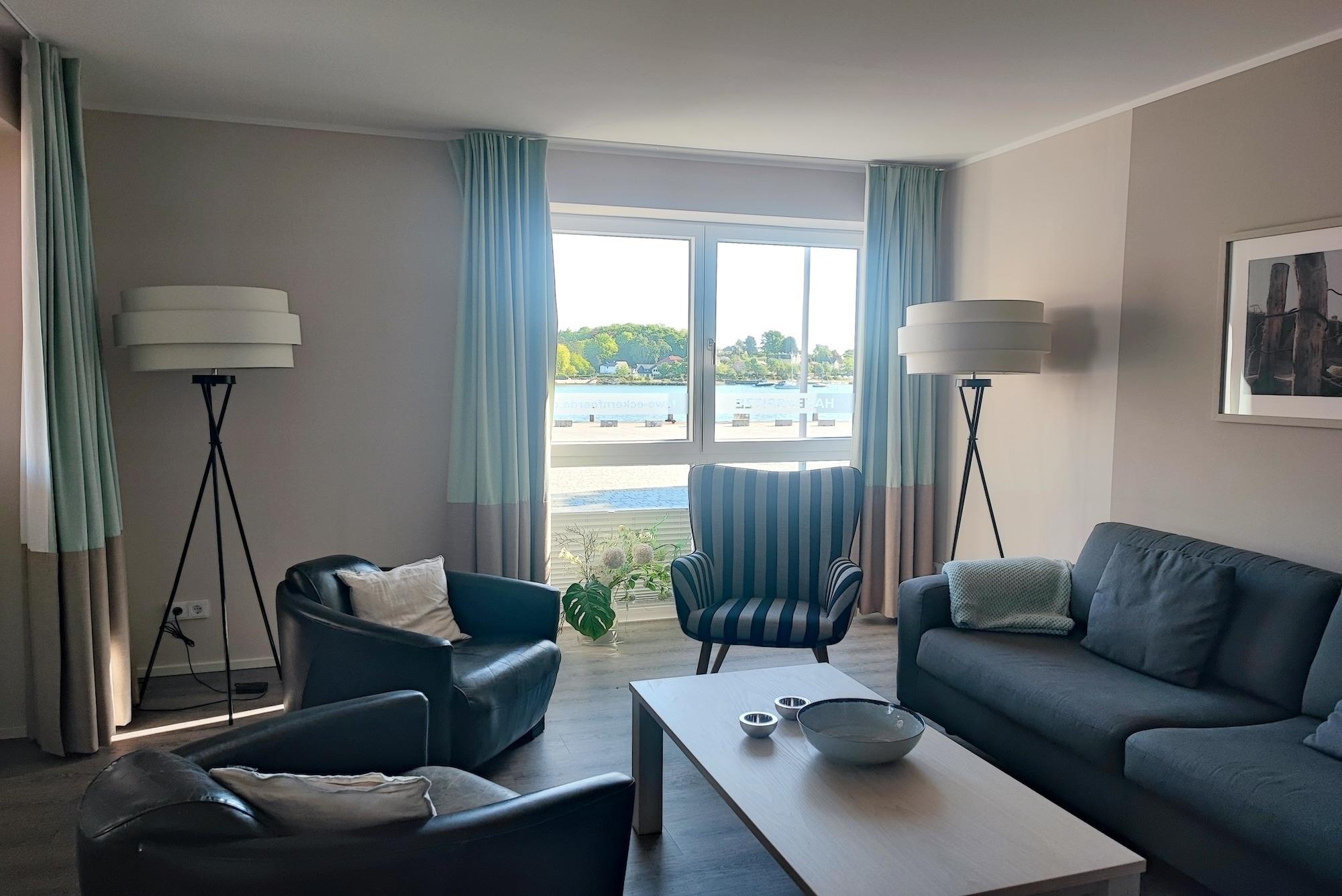 Moderne 4-Sterne-Ferienwohnung "Hafenspitze" in Eckernförde mit Hafenblick und nur 25 m zur Promenade.