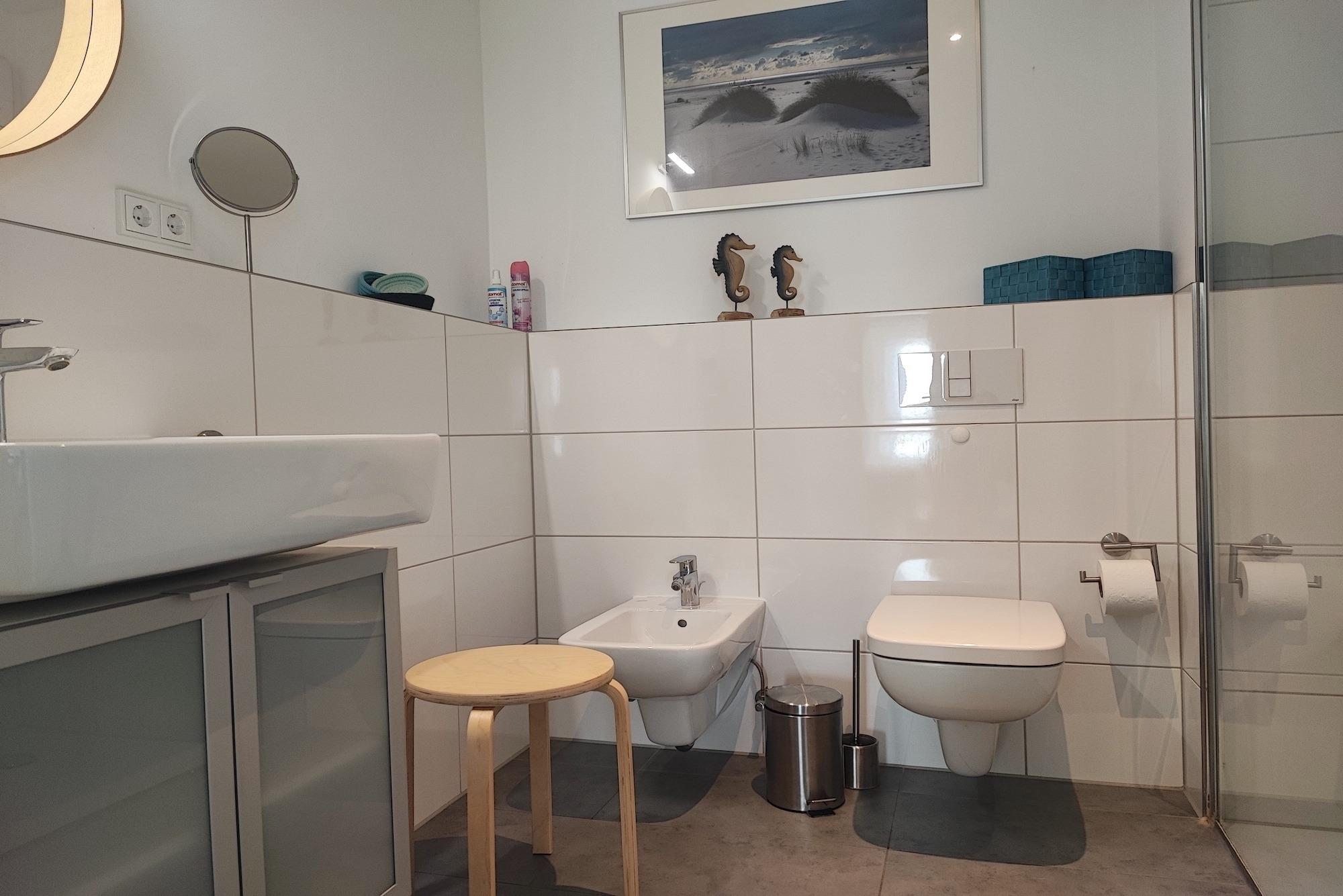 ? Wäschepakete optional wählbar gegen Gebühr: (Bettwäscheset/Handtuchset jeweils pro Aufenthalt/pro Person) können gegen eine Gebühr bestellt werden oder Selbst mitgebracht werden. Achten Sie bei Buchung an die gleiche Anzahl Wäschepakte wie gebuchten Personen. Ein Handtuchset pro Aufenthalt/pro Person ist ausgelegt für eine Woche (1 Duschtuch, 1 Handtuch), zusätzlich 1 Badvorlage pro Bad. Weitere Handtuchsets können bei längeren Aufenthalten z.B. ab dem 7. Tag gegen eine weitere Gebühr dazu bestellt werden ? 1 Topper 180x200, 1 Topper 160x200) ? Babys und Kleinkinder bis zum vollendeten 2. Lebensjahr kostenfrei (Verleih Babyreisebett gegen Gebühr, Babyhochstuhl kostenfrei) ? Haustiere nicht erlaubt ? Parkplatz Nr.08 in der Tiefgarage (inklusive) ? Höhe Toreinfahrt in die Tiefgarage ist 2,00 m ? Fahrradabstellraum Küstenkoje (Nr.08) ? Nichtraucherwohnung