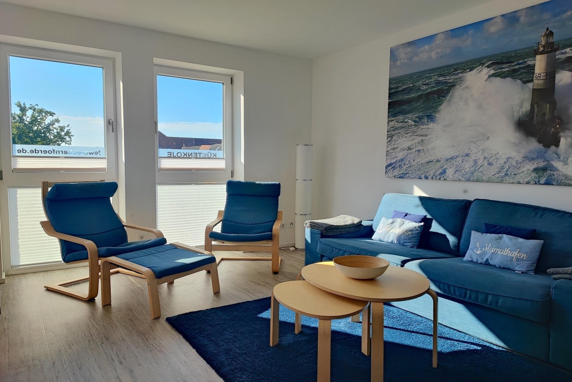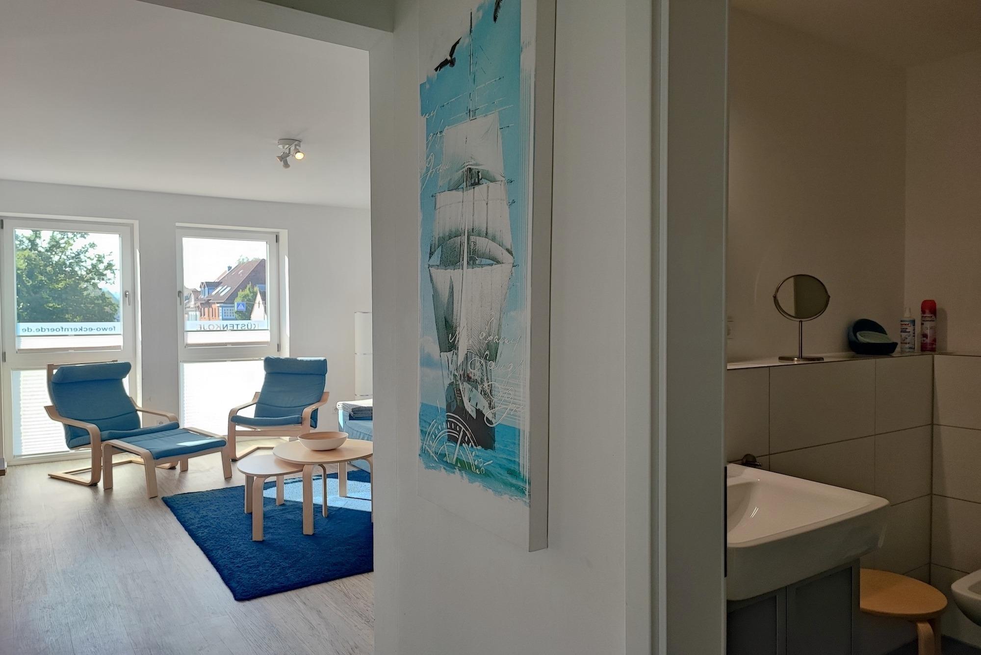 Moderne Ferienwohnung "Küstenkoje" in Eckernförde nahe Hafenpromenade mit Balkon und barrierefreiem Zugang.