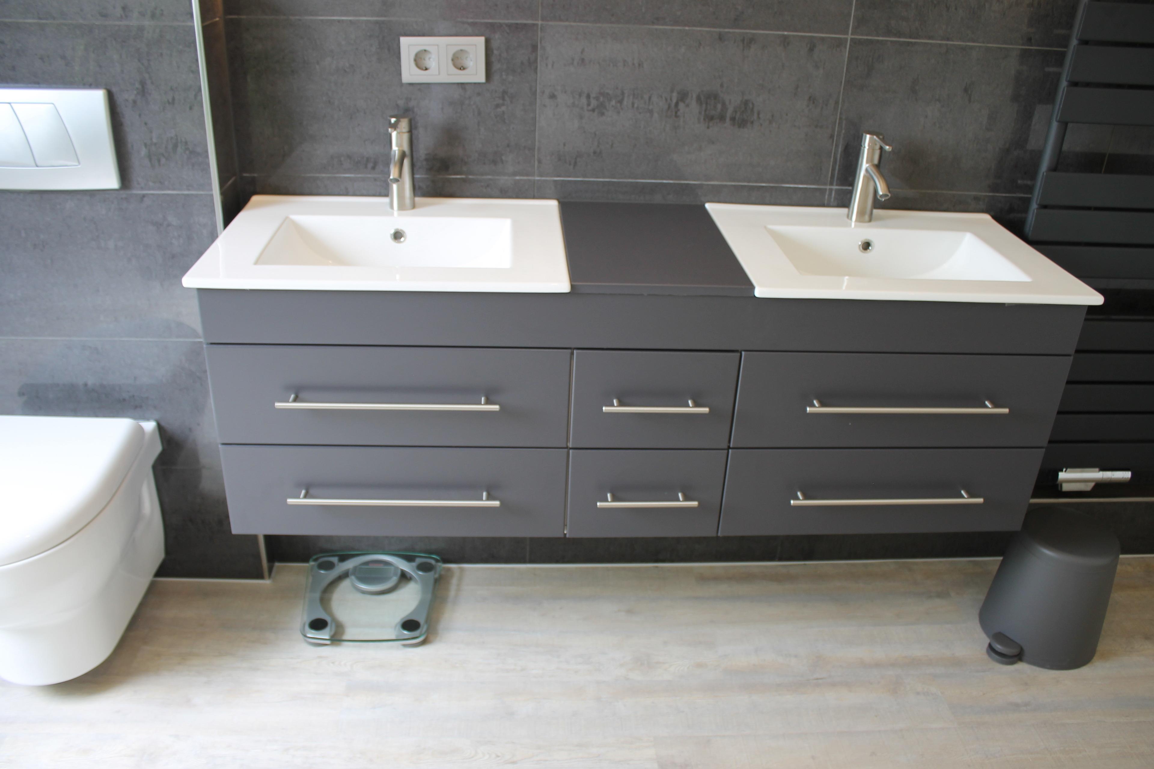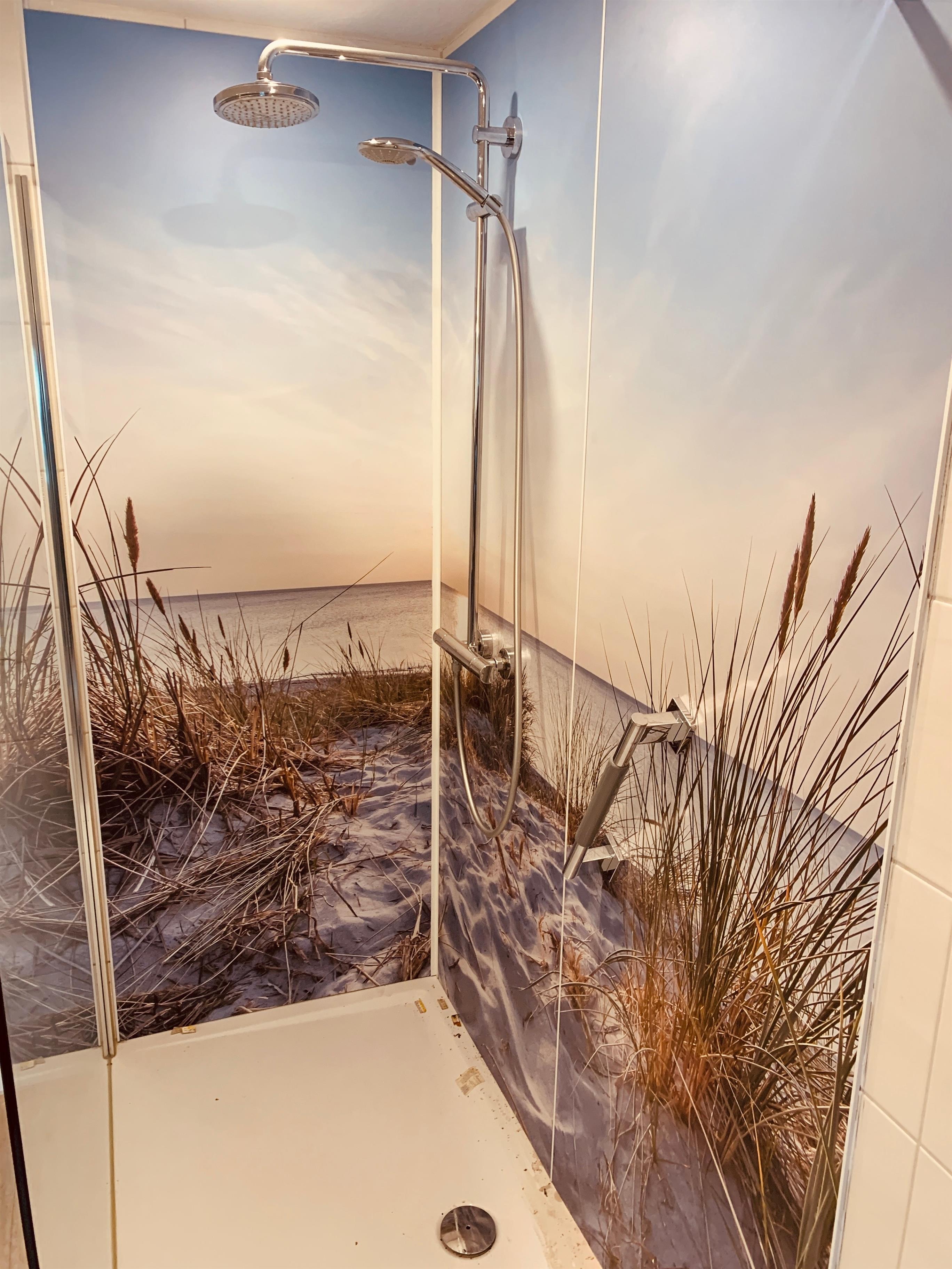 Im Bad befindet sich eine Waschmaschine mit Trockner, beheizbarer Spiegel, Körperwaage, Kosmetikspiegel mit Licht, Tritthocker, ein Holzregal für weitere Ablagefläche, Fön u.v.m.