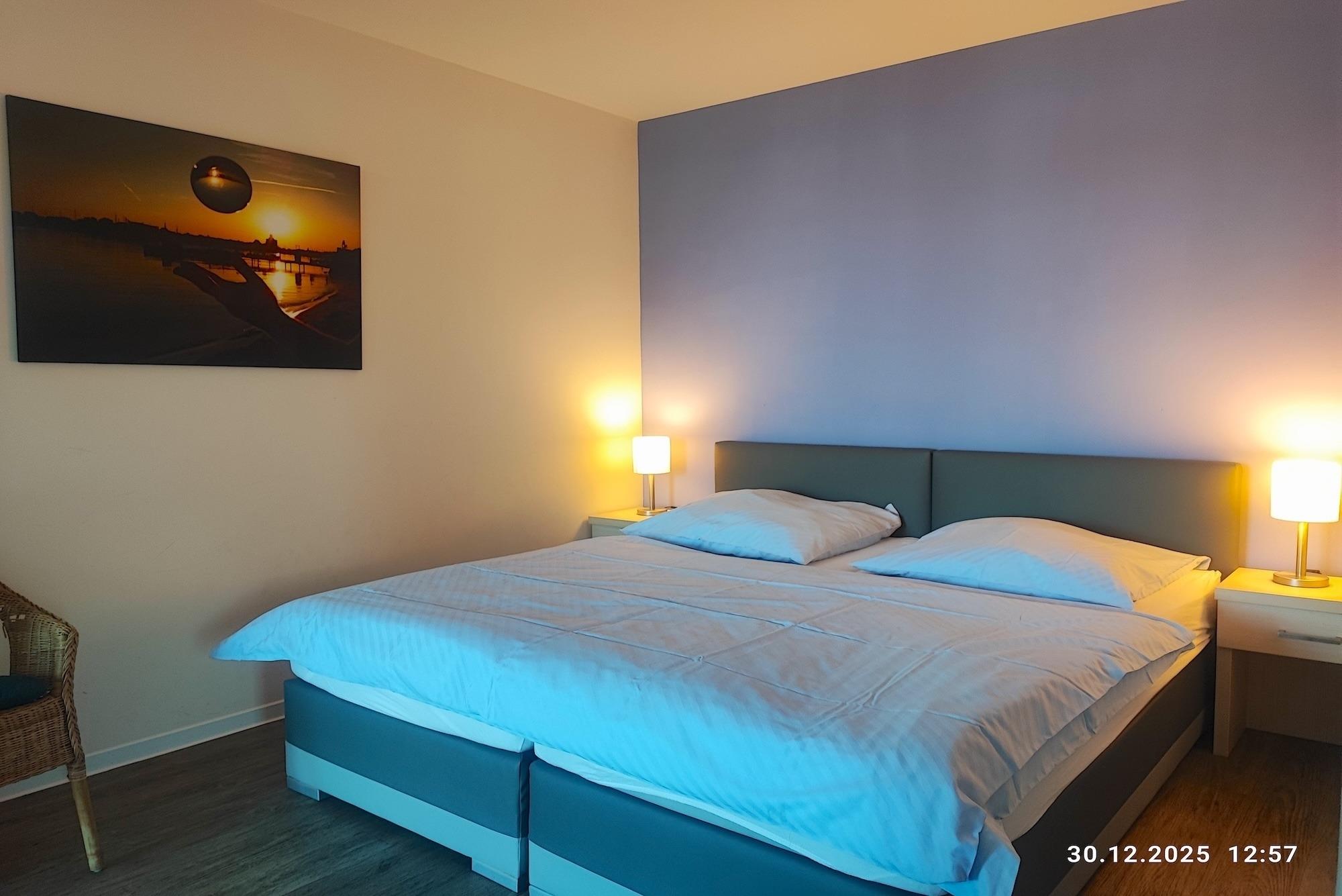 ? Wäschepakete optional wählbar gegen Gebühr: (Bettwäscheset/Handtuchset jeweils pro Aufenthalt/pro Person) können gegen eine Gebühr bestellt werden oder Selbst mitgebracht werden. Achten Sie bei Buchung an die gleiche Anzahl Wäschepakte wie gebuchten Personen. Ein Handtuchset pro Aufenthalt/pro Person ist ausgelegt für eine Woche (1 Duschtuch, 1 Handtuch), zusätzlich 1 Badvorlage pro Bad. Weitere Handtuchsets können bei längeren Aufenthalten z.B. ab dem 7. Tag gegen eine weitere Gebühr dazu bestellt werden ? 2 Einzelmatratzen á 90x200; 1 Schlafsofa 140x200 ? Babys und Kleinkinder bis zum vollendeten 2. Lebensjahr kostenfrei (Verleih Babyreisebett gegen Gebühr, Babyhochstuhl kostenfrei) ? Haustiere willkommen; müssen dazu gebucht werden (Miete Hund und Endreingung Hund) ? Parkplatz Nr. 5.18 befindet sich im Nebengebäude des mehrstöckigen Parkhauses (inklusive) (Maße 2,30 m; Rückwärtseinparken empfohlen, Parkfläche 1,90 m, zum Austieg weitere 0,40) ? Höhe Toreinfahrt in die Tiefgarage ist 2,50 m ? Fahrradabstellraum (Gemeinschaftsraum) ? Nichtraucherwohnung