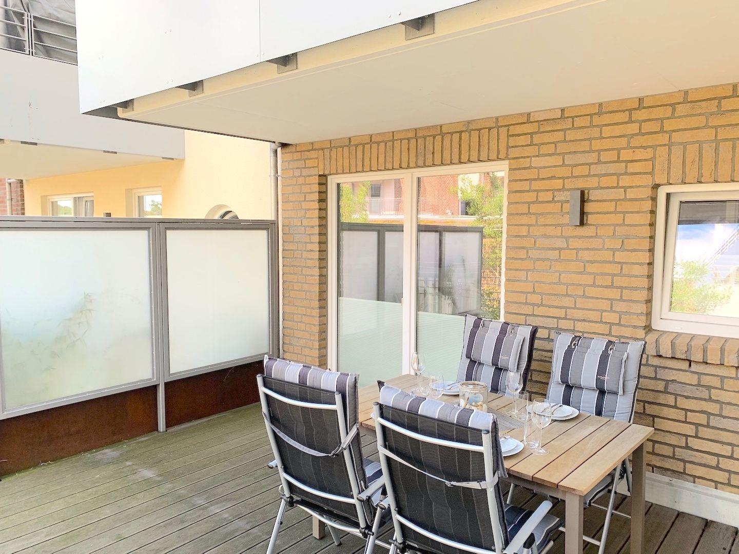 Großzügige Wohnung für vier Personen mit Terrasse. Nur 50 Meter bis zum Strand.
