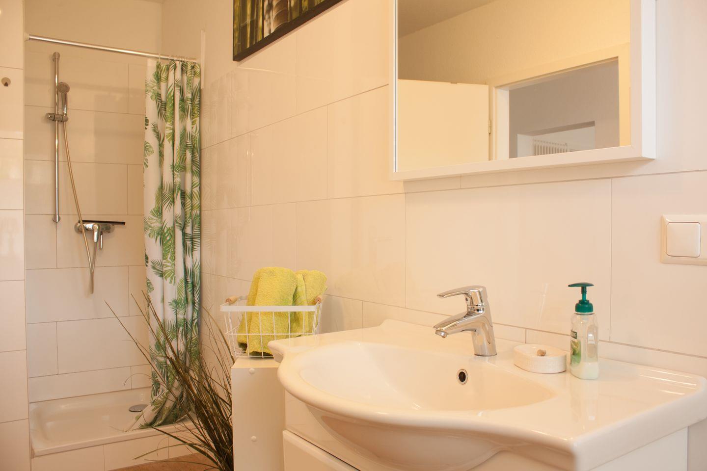 Auch das Tageslichtduschbad bietet genügend Platz und ist modern eingerichtet.