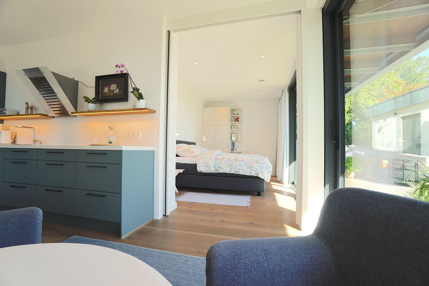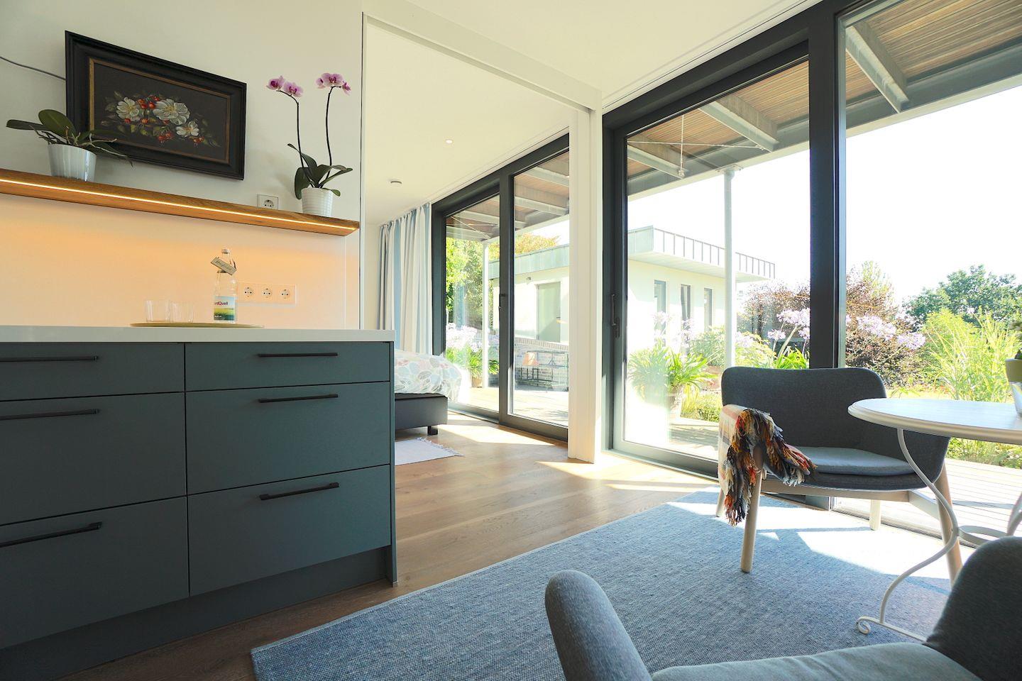 Helle, moderne Ferienwohnung 'Eichkamp' für zwei Personen in ruhiger Lage mit Terrasse und Gartenblick in Eckernförde.