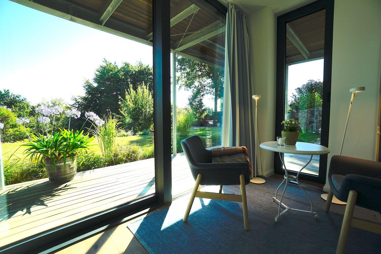 bodentiefen Terrassenfenstern bietet optimale Möglichkeiten zum Erholen,