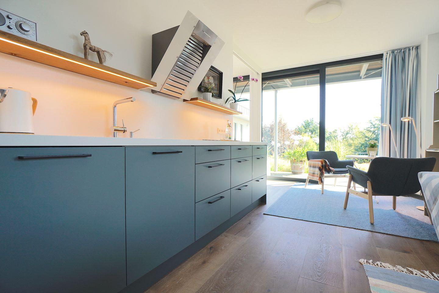 Angrenzend ist das zum Wohn- und Essraum mit einer Schiebetür zu schließende
