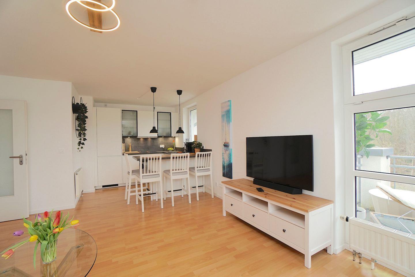 Modernes Südstrand Apartment in Eckernförde, direkt am Strand, frisch renoviert, ideal für Strandtage und Ausflüge, mit Tiefgaragenstellplatz.